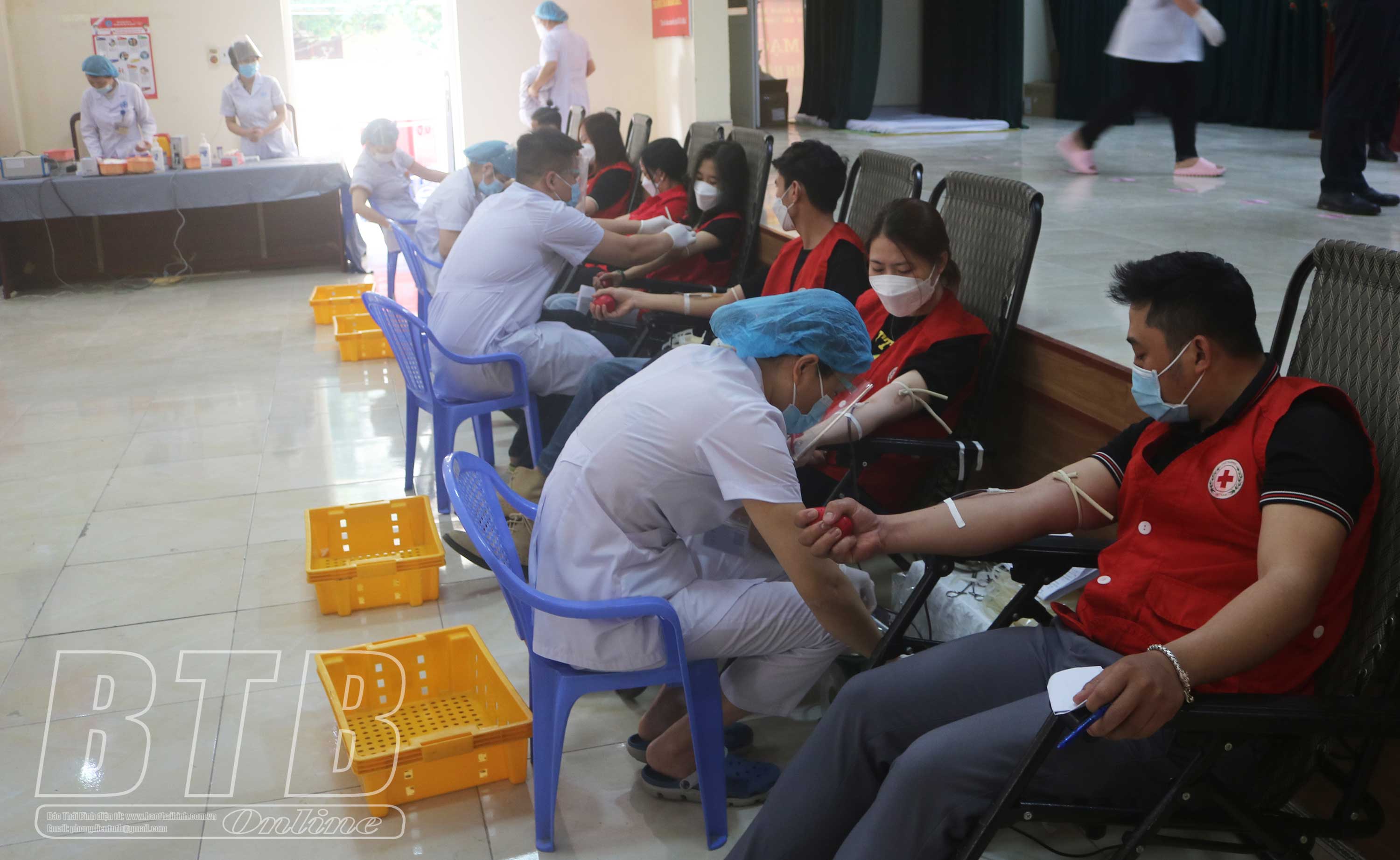 Tình nguyện viên chữ thập đỏ thành phố Thái Bình tham gia hiến máu tình nguyện.