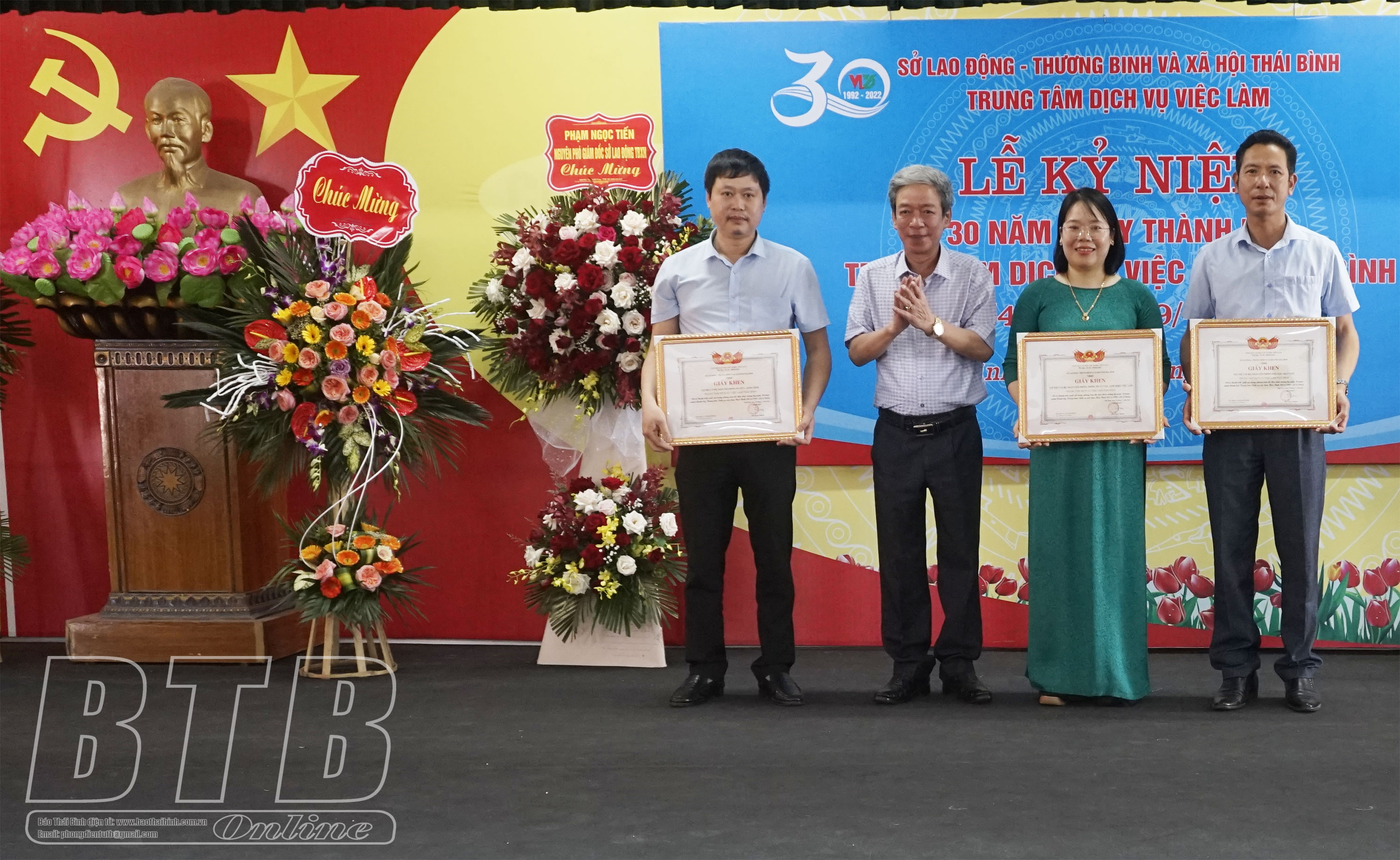 Lãnh đạo Sở Lao động-Thương binh và Xã hội trao bằng khen của UBND tỉnh cho Trung tâm Dịch vụ việc làm Thái Bình vì có nhiều thành tích trong công tác tư vấn, giới thiệu việc làm.