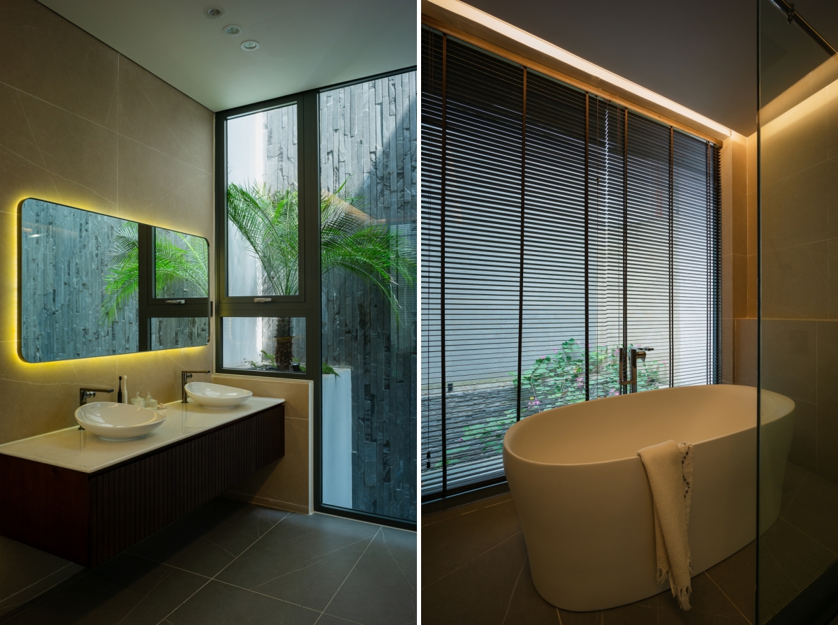 Cây cối được bố trí khắp nhà để từ trong nhà tắm, người ở cũng nhìn thấy màu xanh.
