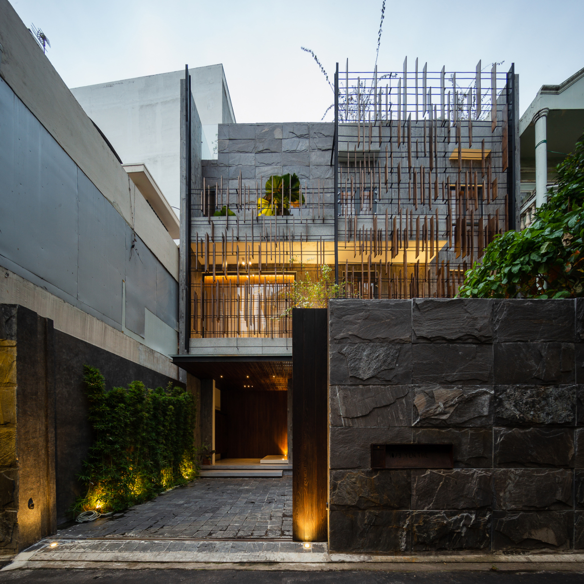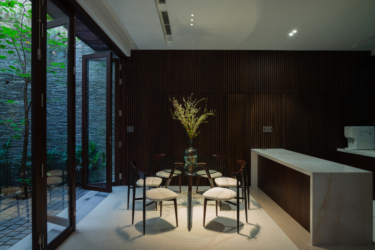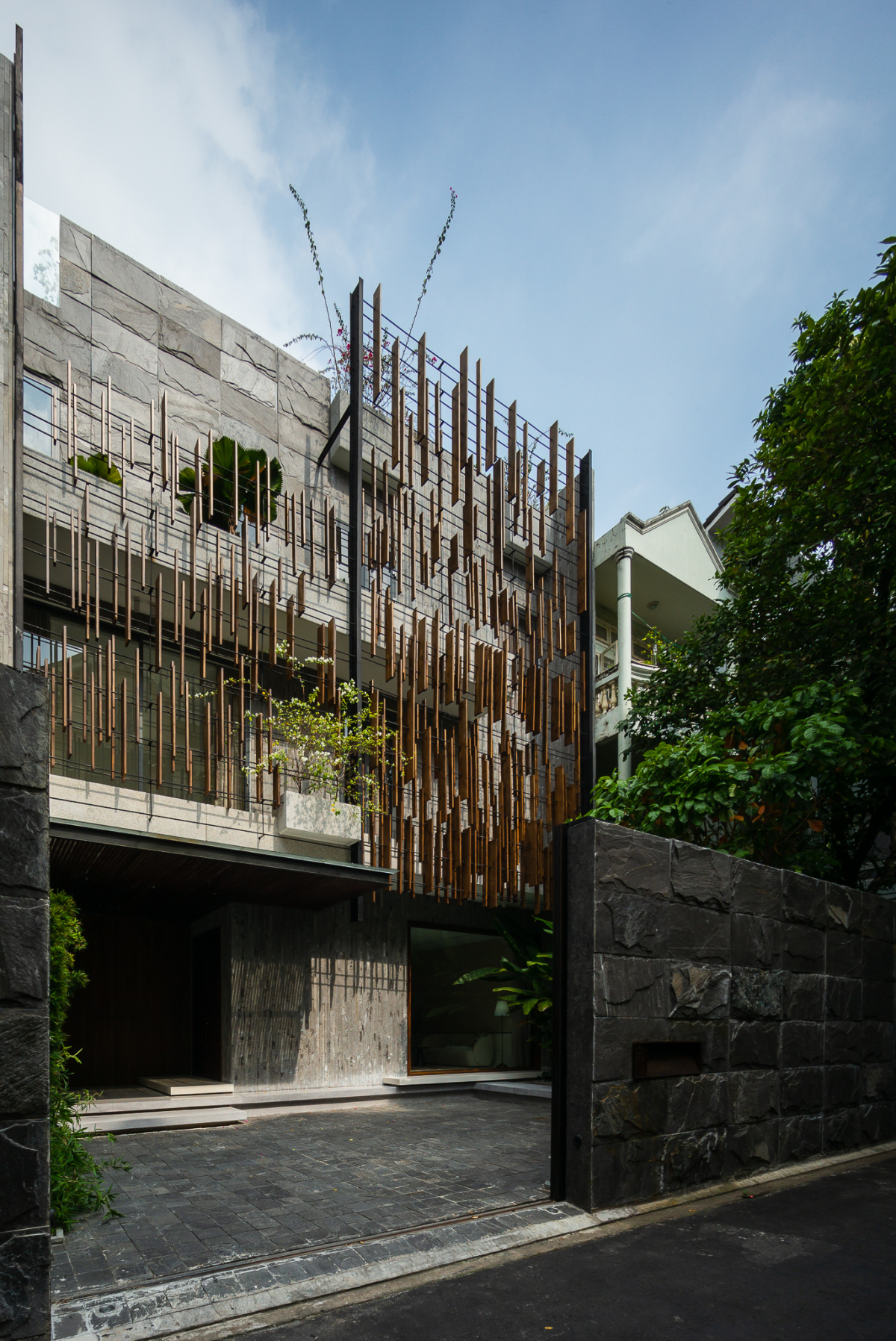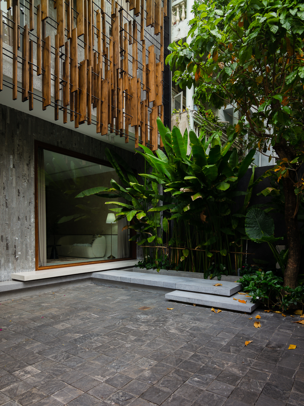 Không chỉ cây xanh, các vật liệu dùng trong công trình cũng gợi nhớ thiên nhiên như gỗ, đá xanh và đá đen Đà Nẵng, đá mài.