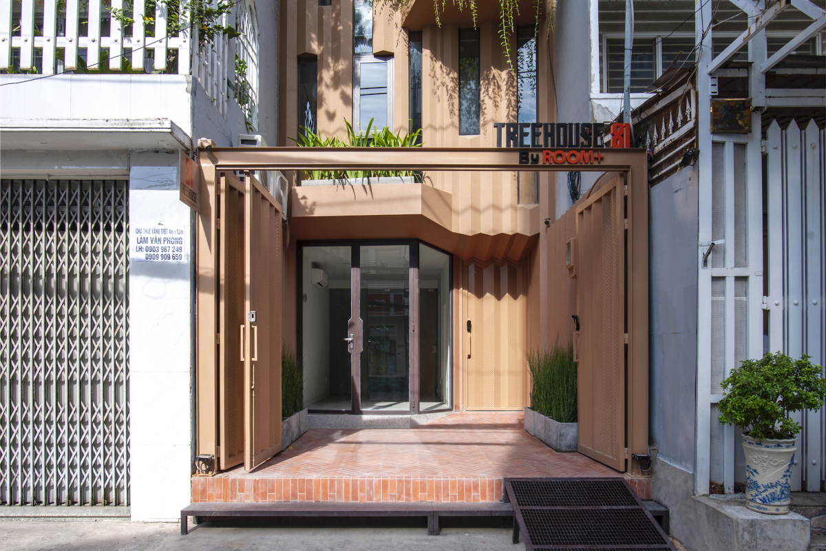 Ngôi nhà màu nâu cam, cao sáu tầng trên mảnh đất rộng gần 80 m2 ở quận Bình Thạnh là ví dụ cho kiểu nhà phố đa năng trong đô thị Việt Nam. Nằm đối diện con đường lớn, đây không chỉ là nơi ở mà còn được gia chủ cho thuê.