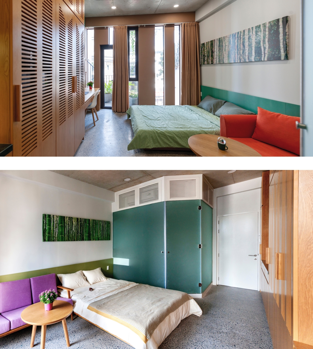 Trong nhà, các phòng cho thuê được chia thành hai khối trước và sau nhà, ở giữa là trục cầu thang. Nhờ đó, người ở giữ được sự độc lập, riêng tư nhưng vẫn dễ dàng giao lưu thông qua các không gian chung như sảnh, sân.