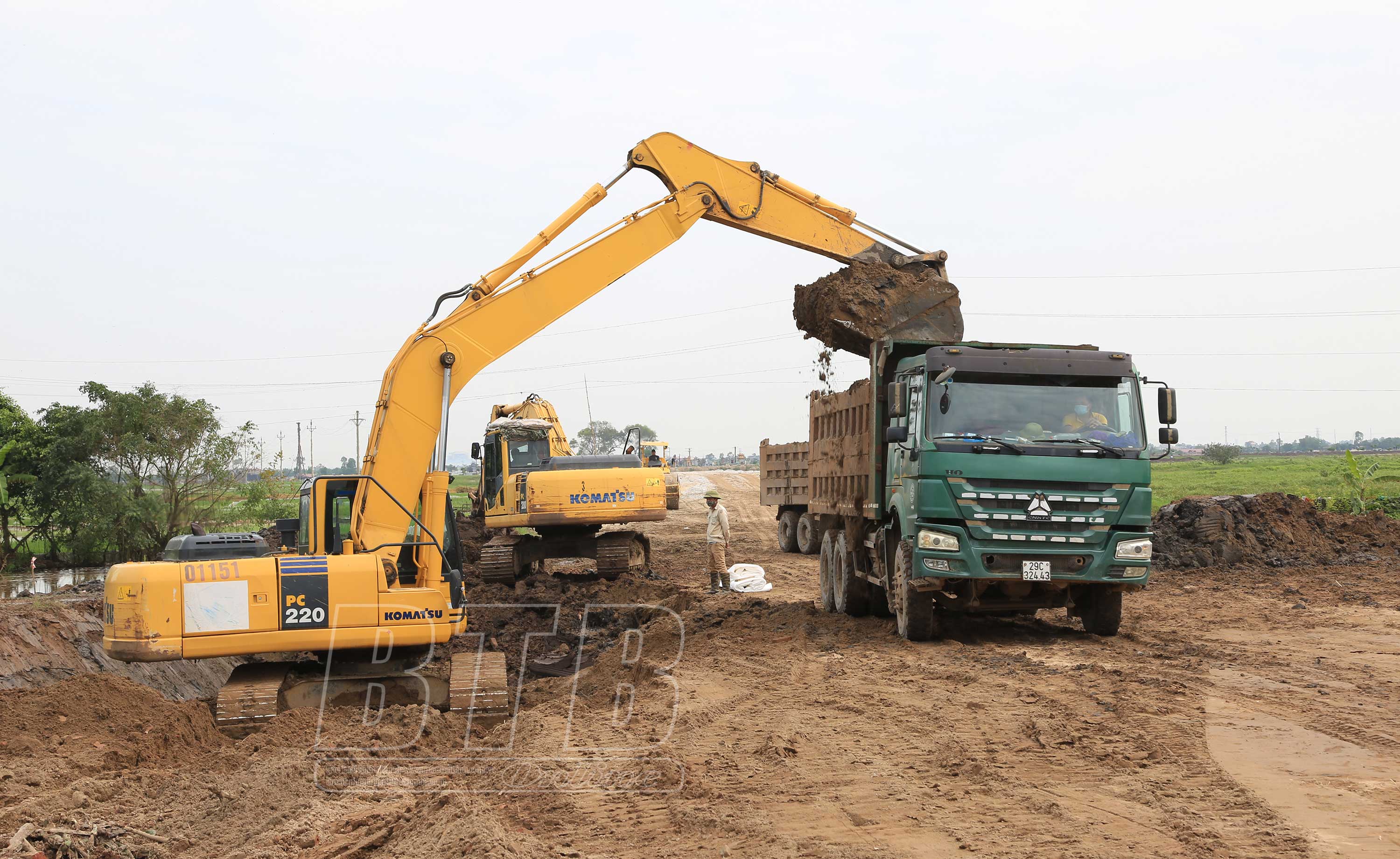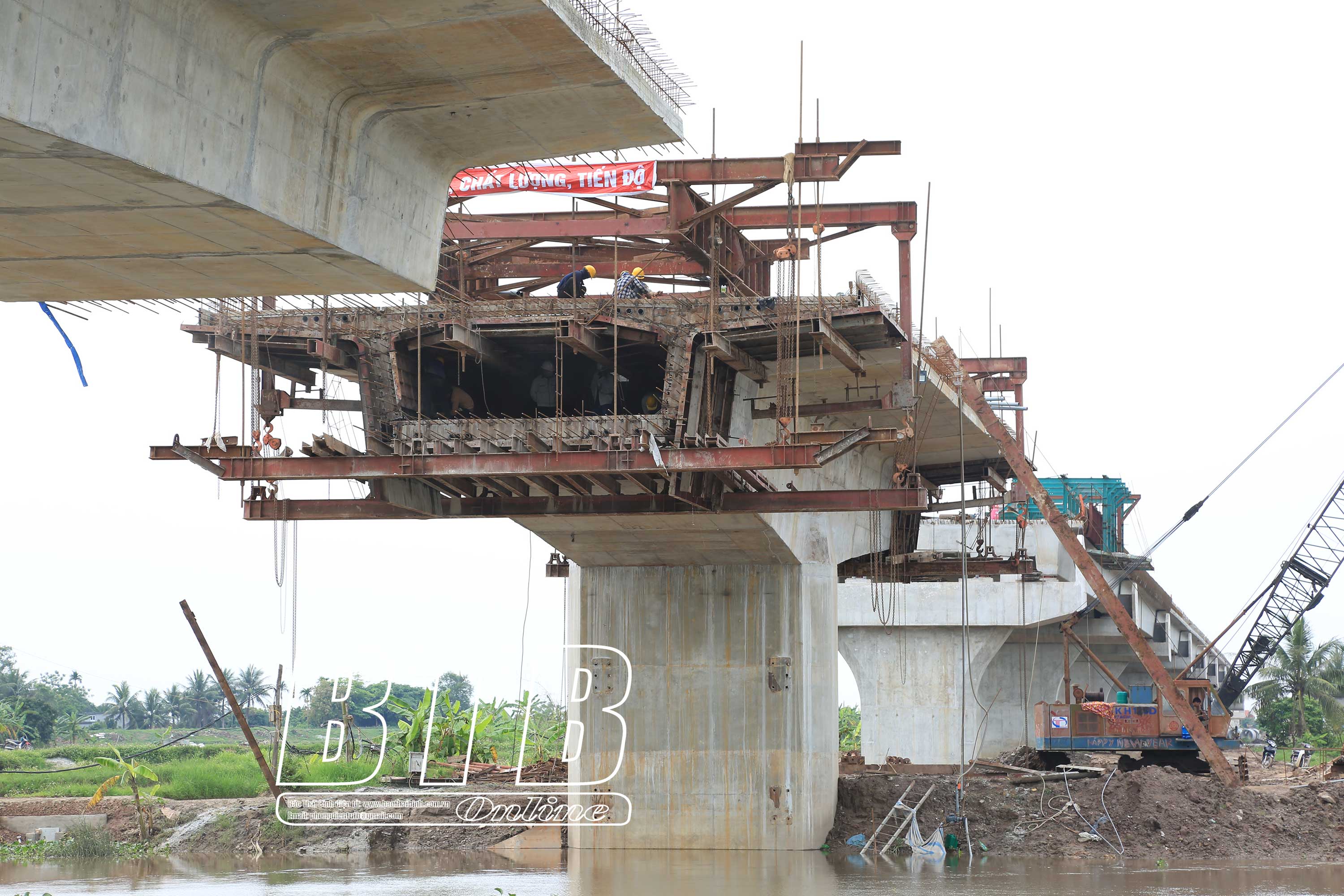 Cầu vượt sông Hóa nối Thái Bình với Hải Phòng đang được thi công.Tuyến đường quốc lộ 37 trên địa bàn huyện Thái Thụy đang được nhà thầu tập trung thi công.