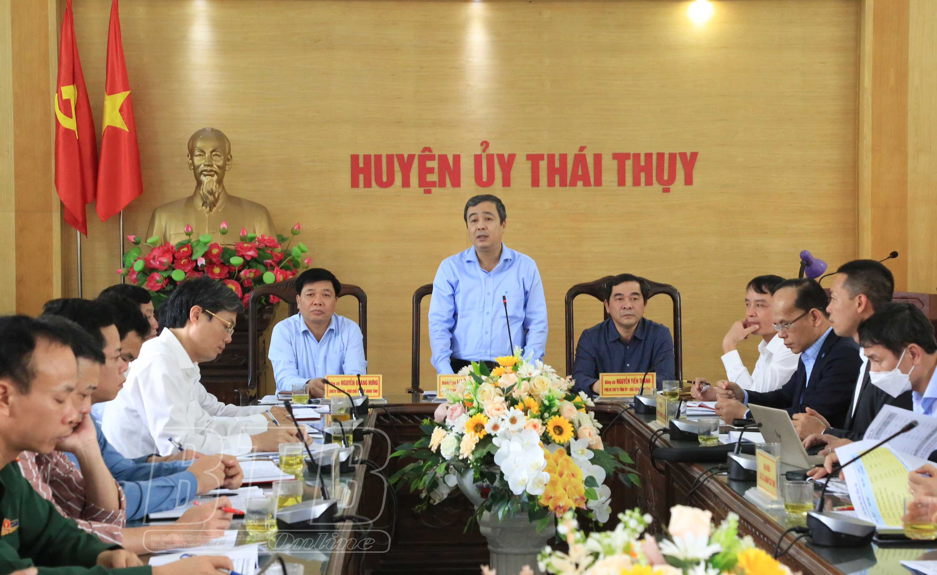 Chiều ngày 19/4, các đồng chí: Ngô Đông Hải, Ủy viên Ban Chấp hành Trung ương Đảng, Bí thư Tỉnh ủy; Nguyễn Tiến Thành, Phó Bí thư thường trực Tỉnh ủy, Chủ tịch HĐND tỉnh; Nguyễn Quang Hưng, Ủy viên Ban Thường vụ Tỉnh ủy, Phó Chủ tịch thường trực UBND tỉnh đi kiểm tra thực địa một số dự án trọng điểm của tỉnh trên địa bàn huyện Thái Thụy và làm việc với Thường trực Huyện ủy Thái Thụy về một số nội dung liên quan. Cùng dự buổi làm việc có lãnh đạo một số sở, ngành, đơn vị, địa phương.