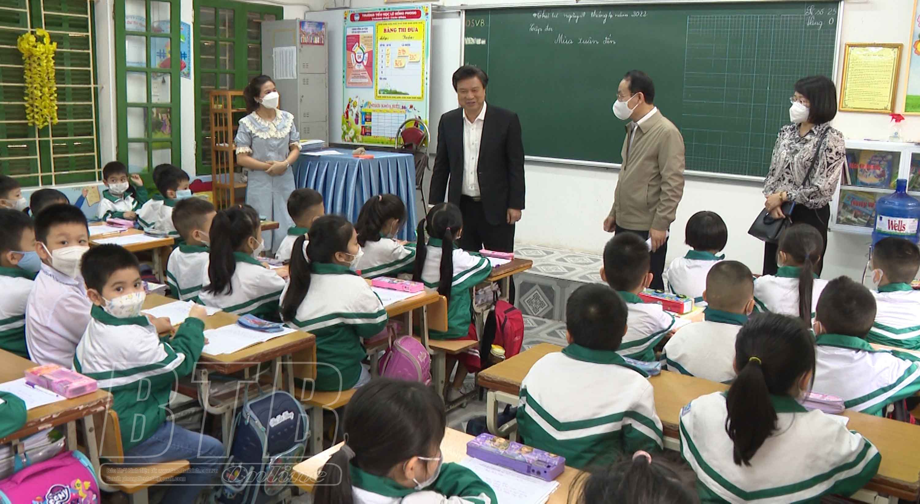 Thứ trưởng Bộ Giáo dục và Đào tạo Nguyễn Hữu Độ kiểm tra công tác dạy và học tại Trường Tiểu học Lê Hồng Phong, thành phố Thái Bình.