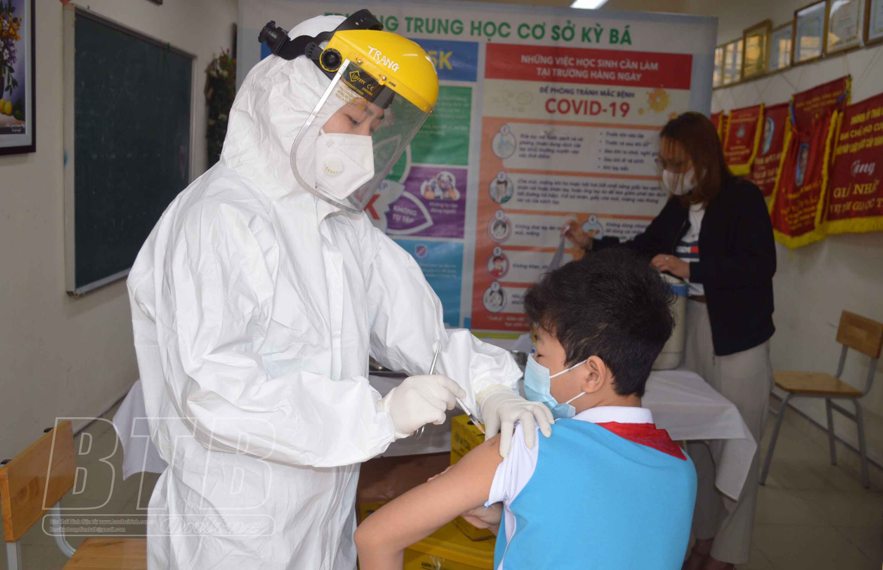 Đến ngày 21/4, nhiều địa phương ở các huyện: Đông Hưng, Tiền Hải, Quỳnh Phụ, Thái Thụy và thành phố Thái Bình đã triển khai tiêm vắc-xin phòng Covid-19 cho trẻ dưới 12 tuổi. Công tác tiêm chủng diễn ra an toàn. Sau khi tiêm, các bậc phụ huynh rất phấn khởi vì con mình đã có thêm “lá chắn” bảo vệ trước bối cảnh dịch Covid-19 vẫn đang diễn biến phức tạp với sự xuất hiện của những biến chủng mới ở một số quốc gia.