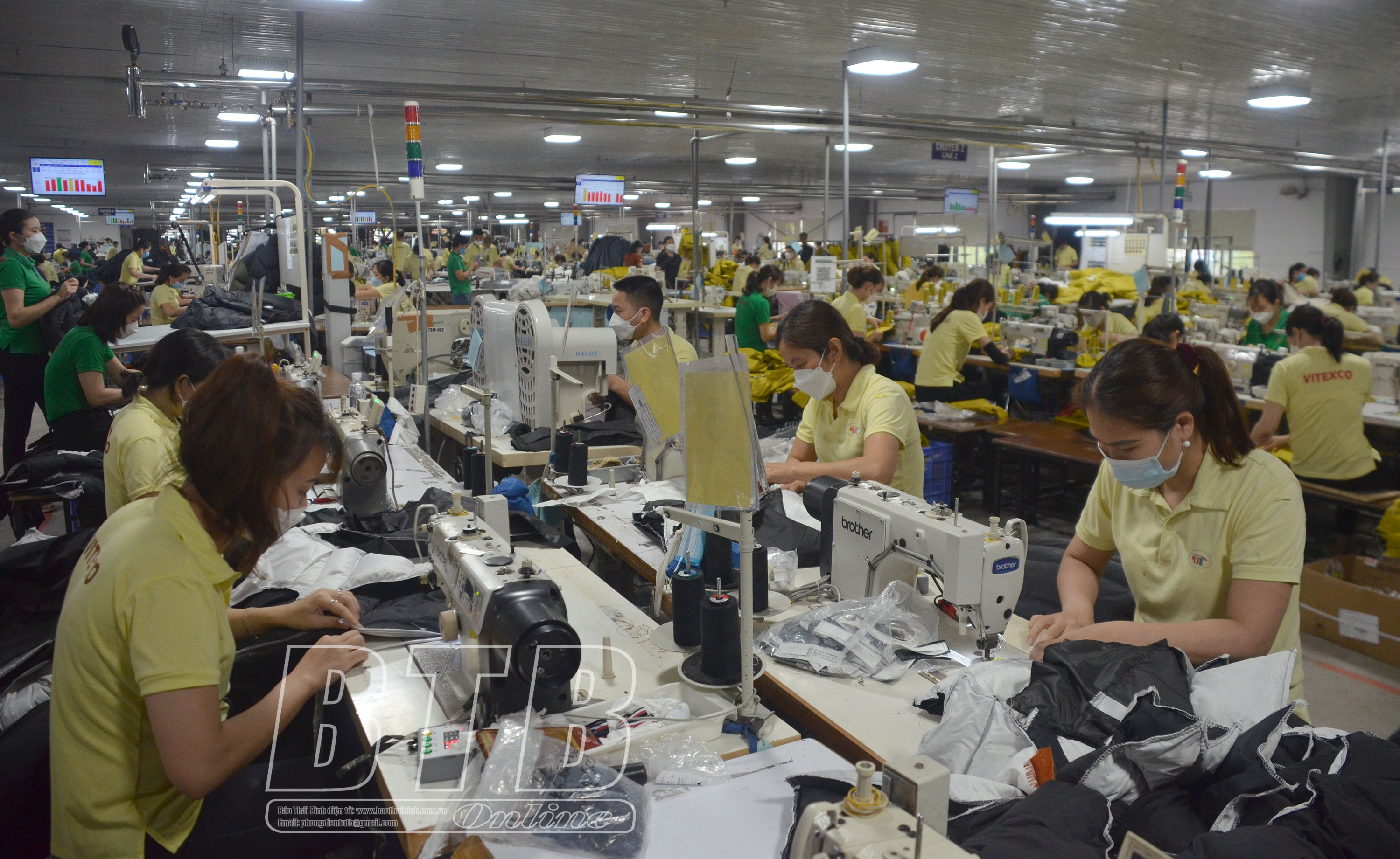 Công nhân Công ty Cổ phần May Việt Hưng, xã Đông Hợp (Đông Hưng) thi đua lao động sản xuất.