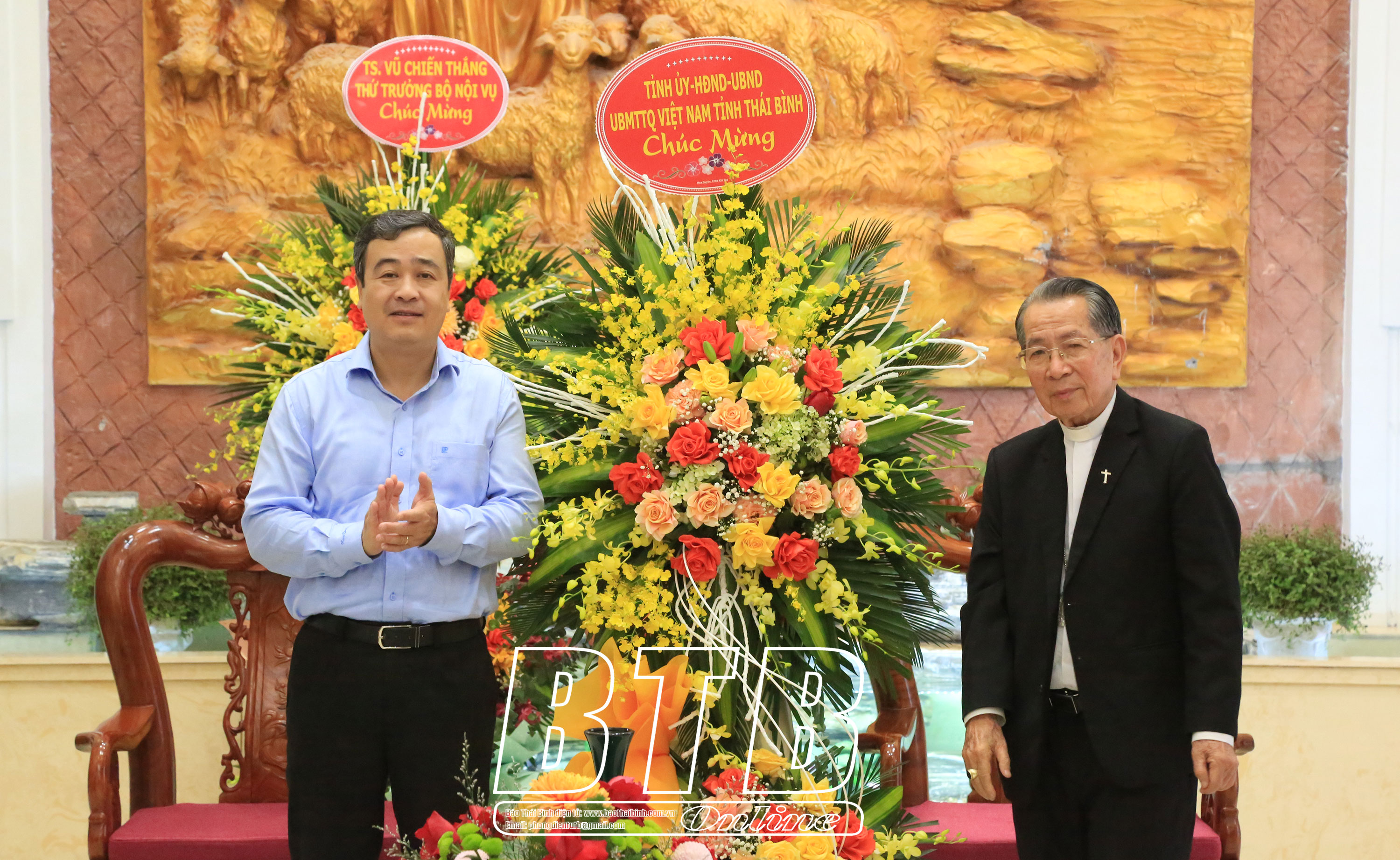 Đồng chí Bí thư Tỉnh ủy mong muốn trong thời gian tới, Tòa giám mục Thái Bình sẽ tiếp tục chăm lo đời sống bà con giáo dân, động viên bà con tích cực tham gia các phong trào thi đua yêu nước, đồng hành cùng cấp ủy, chính quyền địa phương thực hiện thắng lợi nhiệm vụ chính trị của tỉnh.