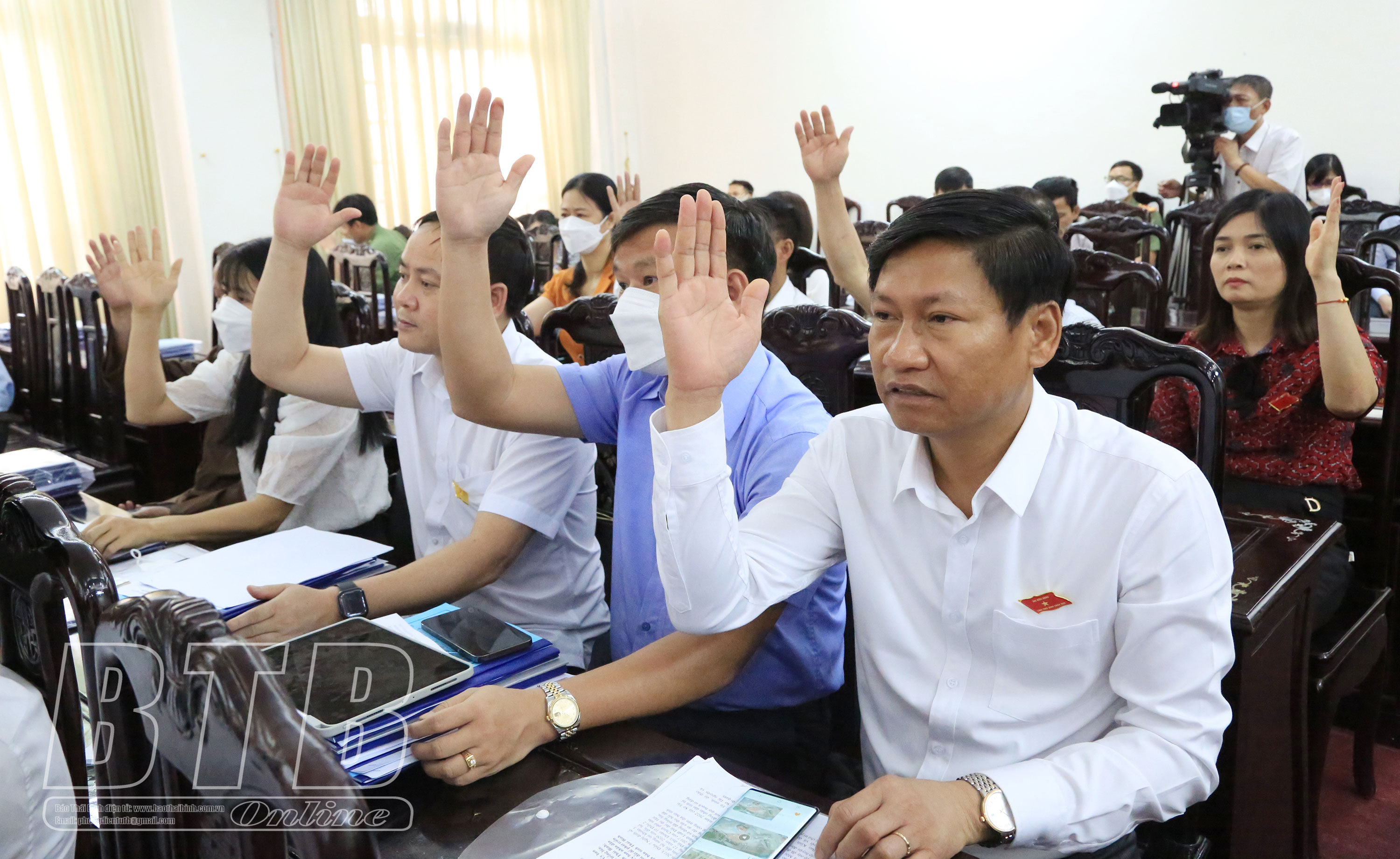 Đại biểu biểu quyết các nghị quyết tại kỳ họp.