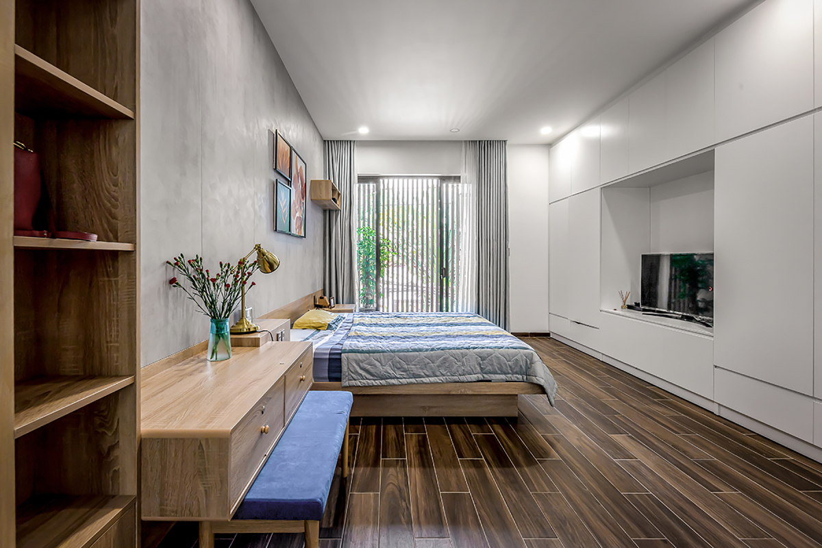 Để người phụ nữ cao tuổi nhất trong nhà thuận tiện sinh hoạt, không phải leo trèo cầu thang, kiến trúc sư đã bố trí phòng ngủ của bà ngay tầng trệt.