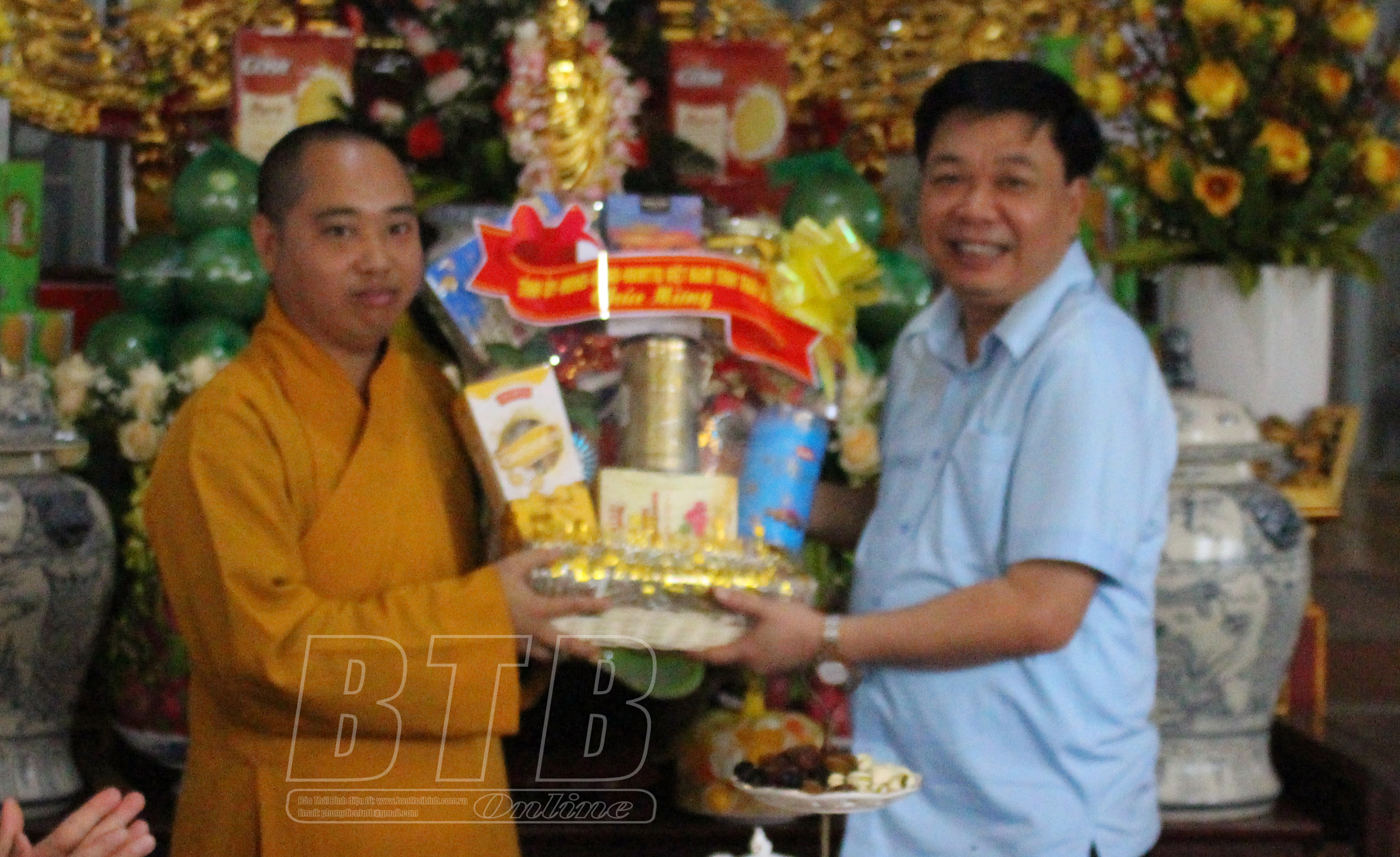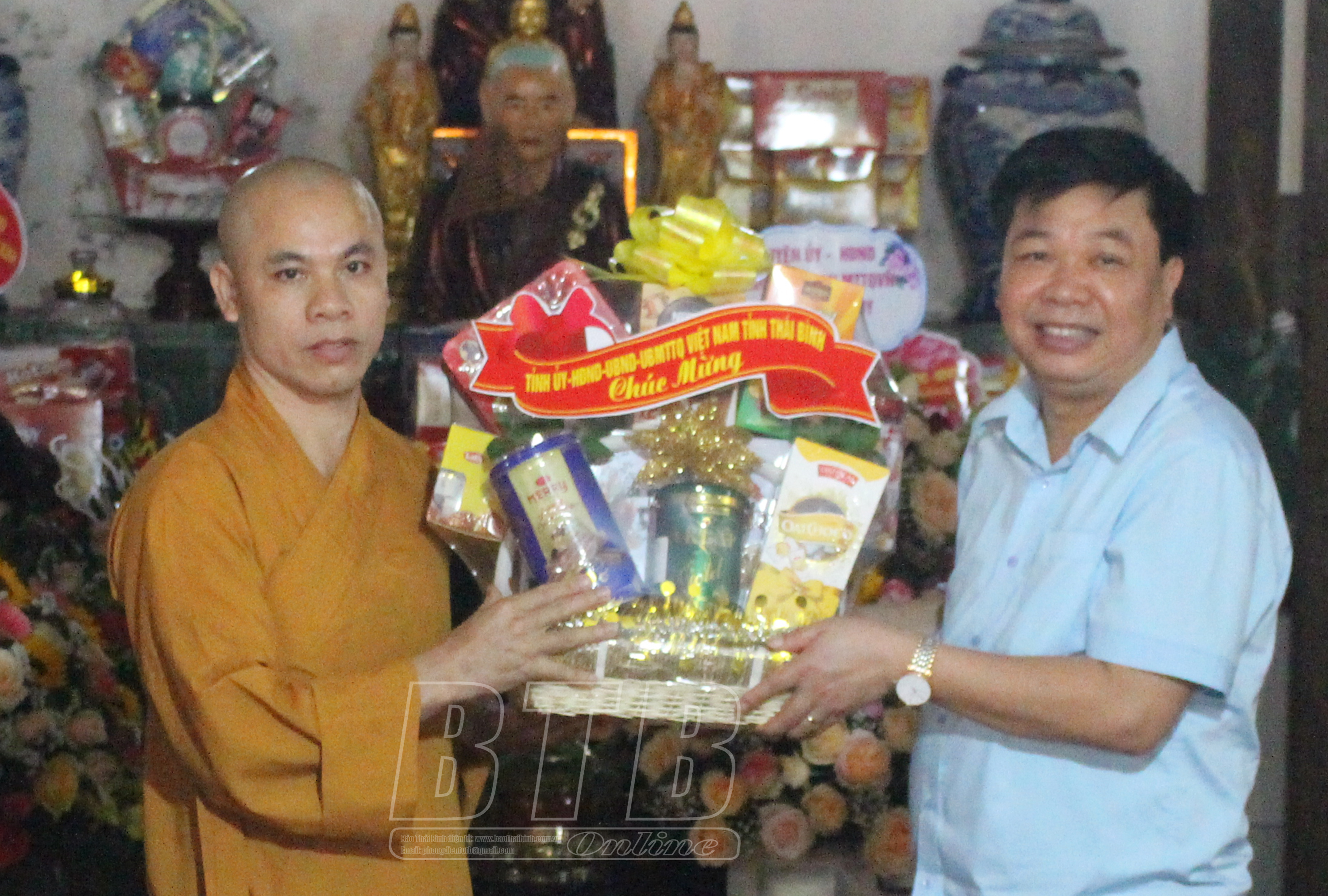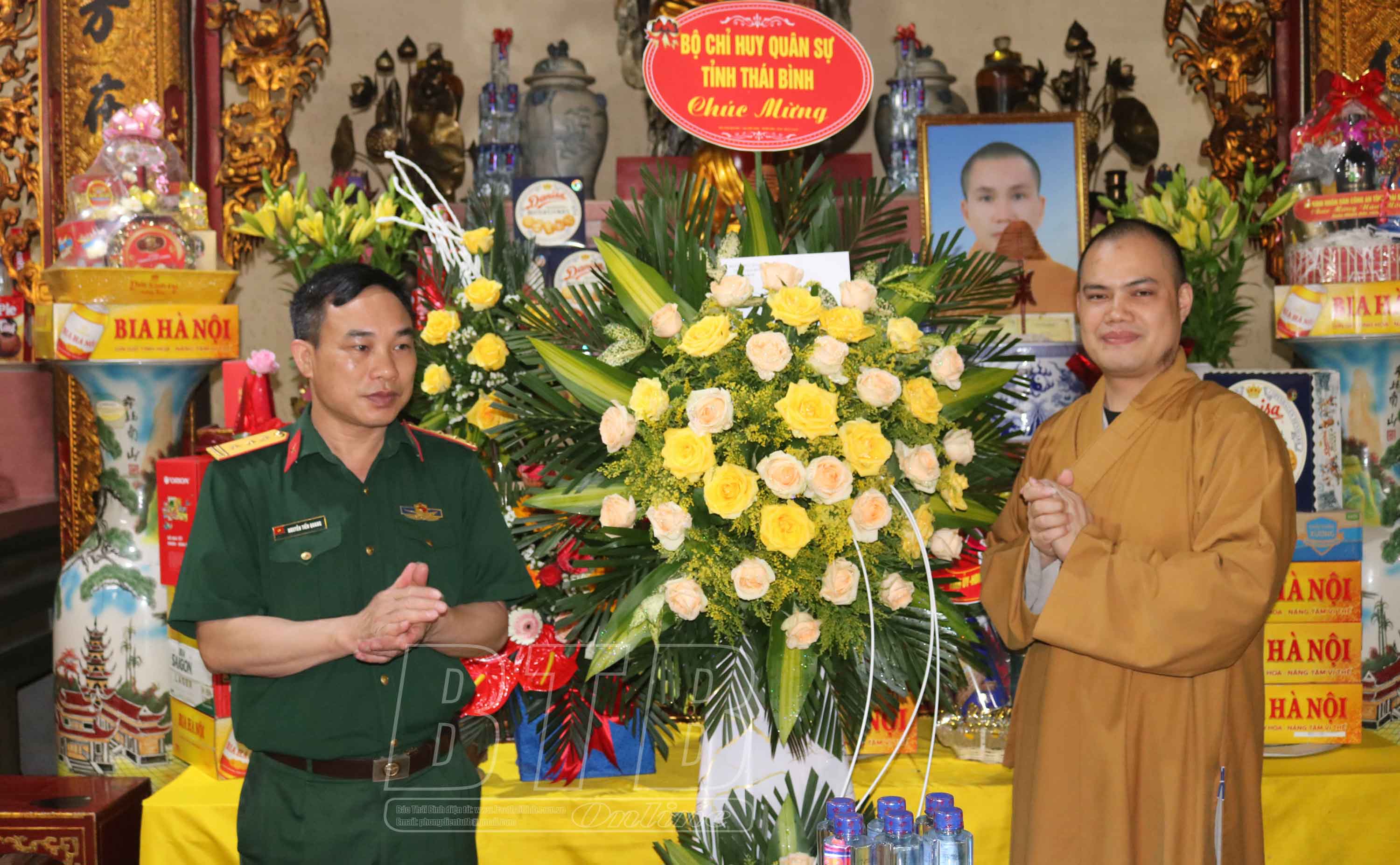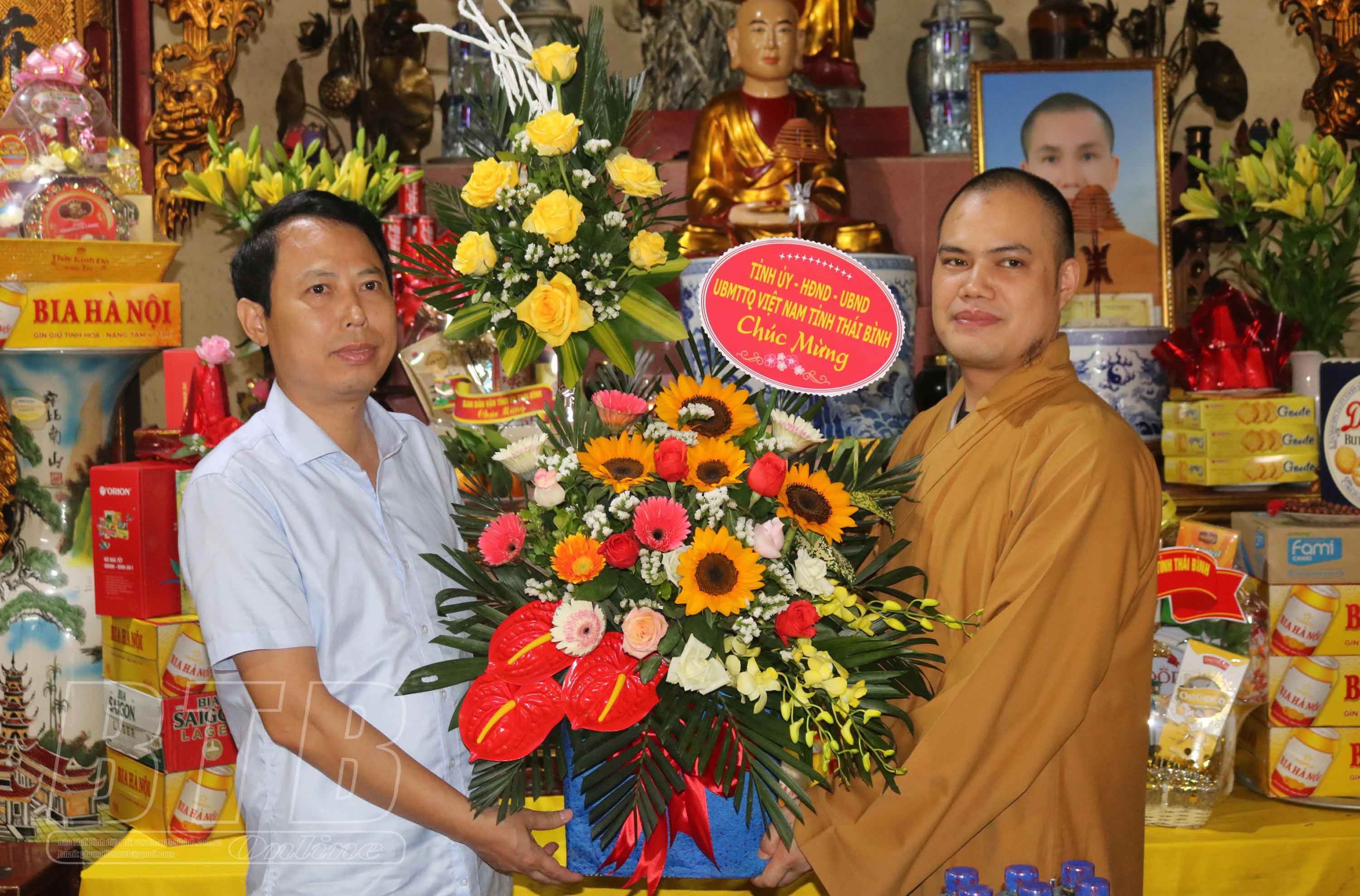 * Tại huyện Thái Thụy, đồng chí Nguyễn Quang Hưng, Ủy viên Ban Thường vụ Tỉnh ủy, Phó Chủ tịch thường trực UBND tỉnh đã đến thăm, chúc mừng Đại đức Thích Thanh Ngọc, Ủy viên thường trực Ban Trị sự Giáo hội Phật giáo Việt Nam tỉnh, Trưởng ban Trị sự Giáo hội Phật giáo Việt Nam huyện Thái Thụy, trụ trì chùa Phương Man, xã Hồng Dũng; Đại đức Thích Thanh Thịnh, Ủy viên thường trực Ban Trị sự Giáo hội Phật giáo Việt Nam tỉnh, Phó Trưởng ban Trị sự Giáo hội Phật giáo Việt Nam huyện Thái Thụy, trụ trì chùa Phúc Linh, xã Thụy Liên.