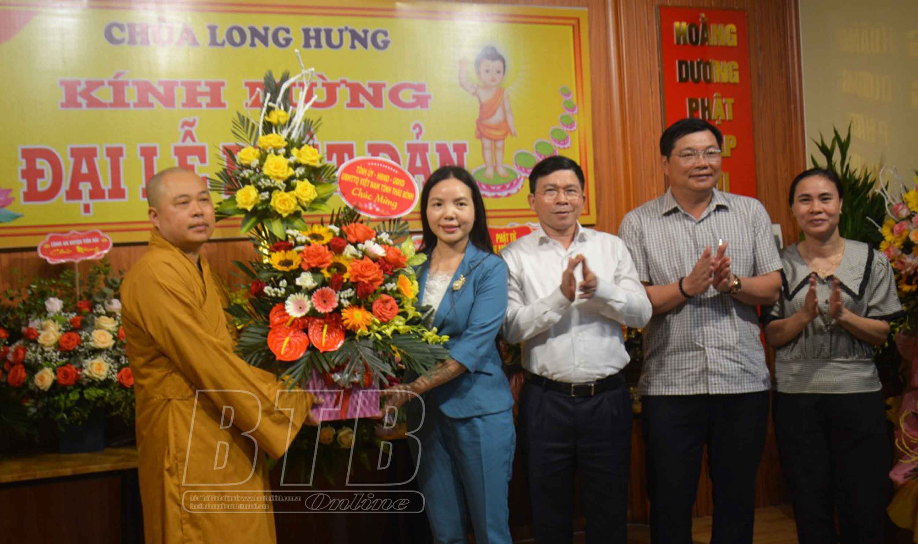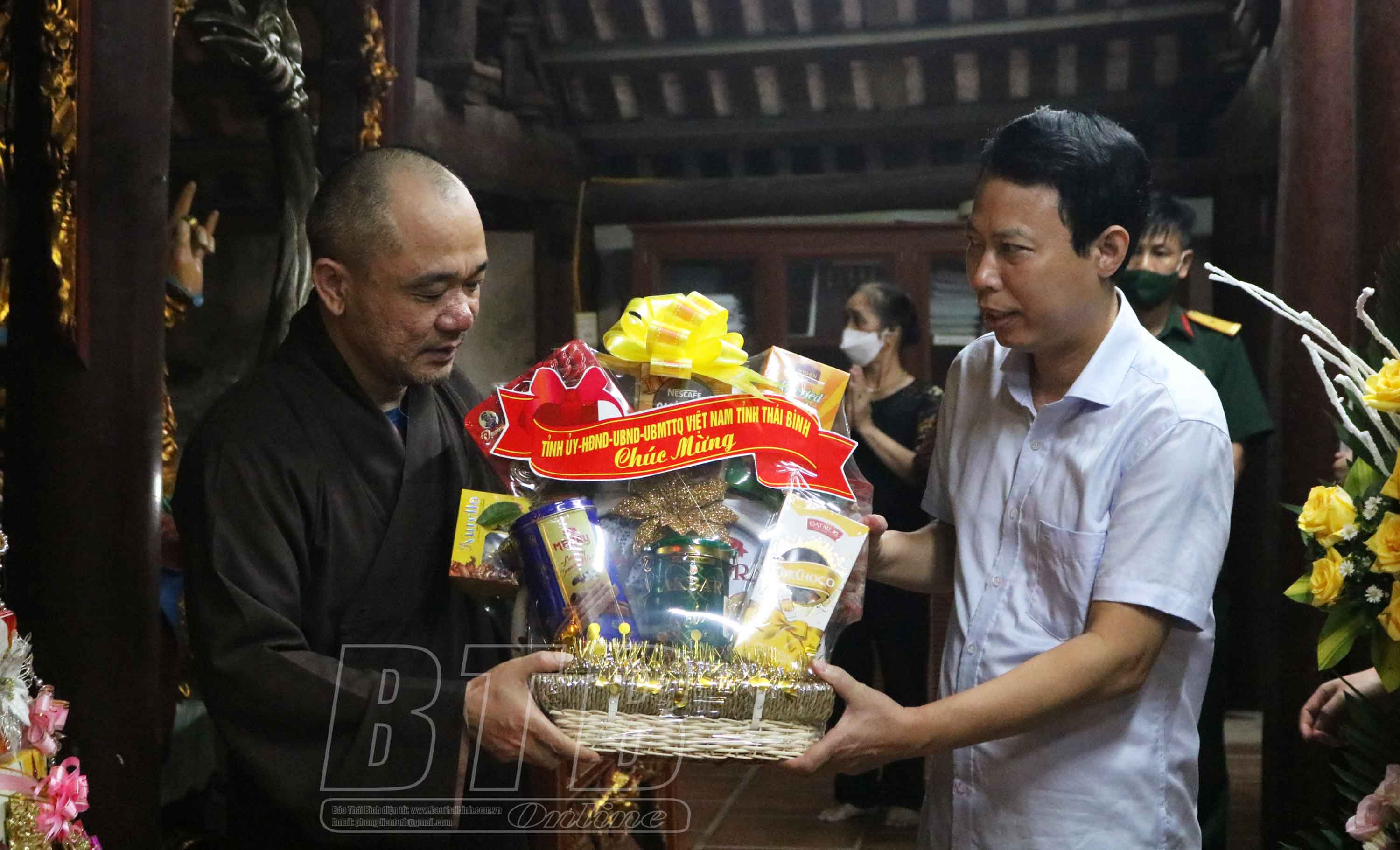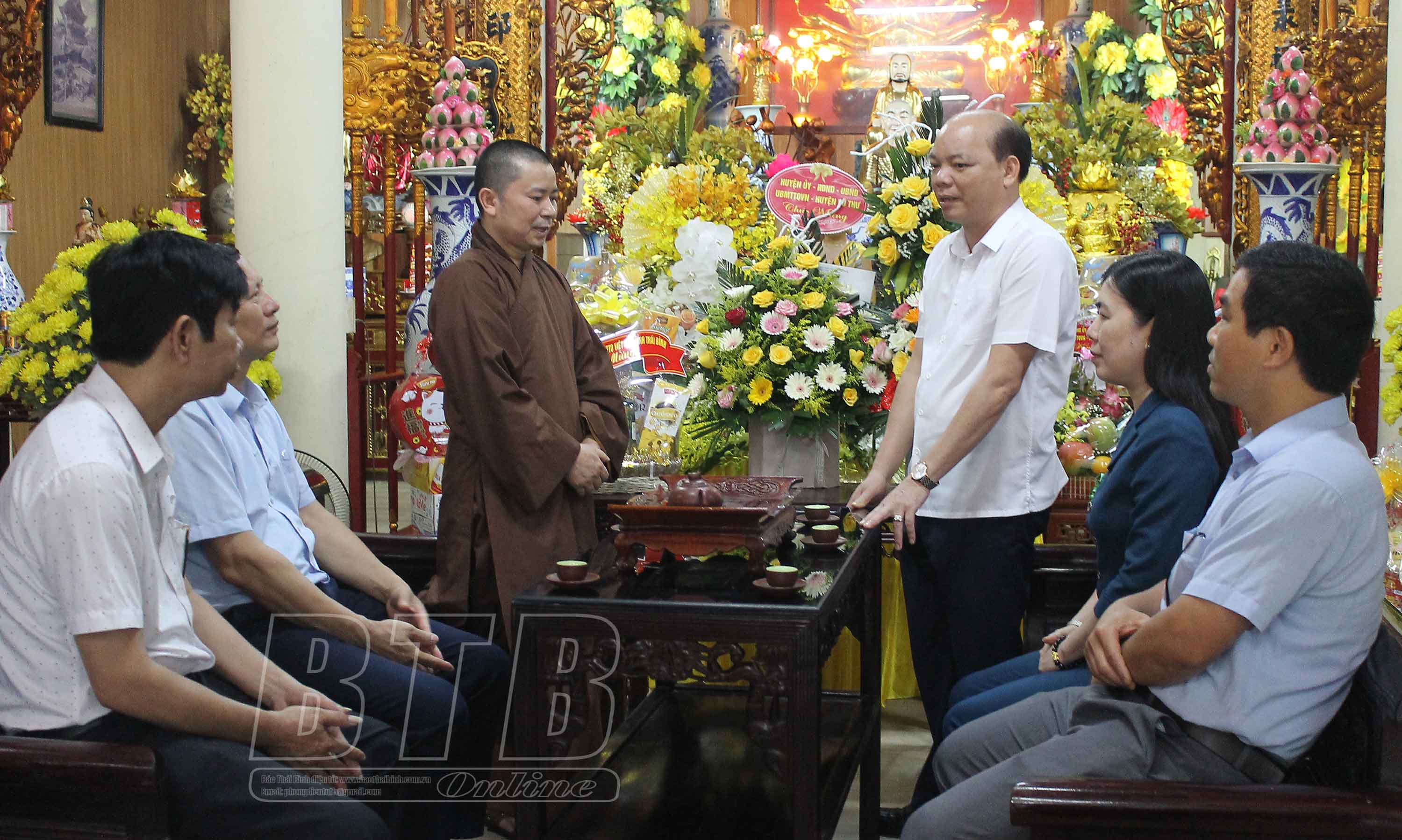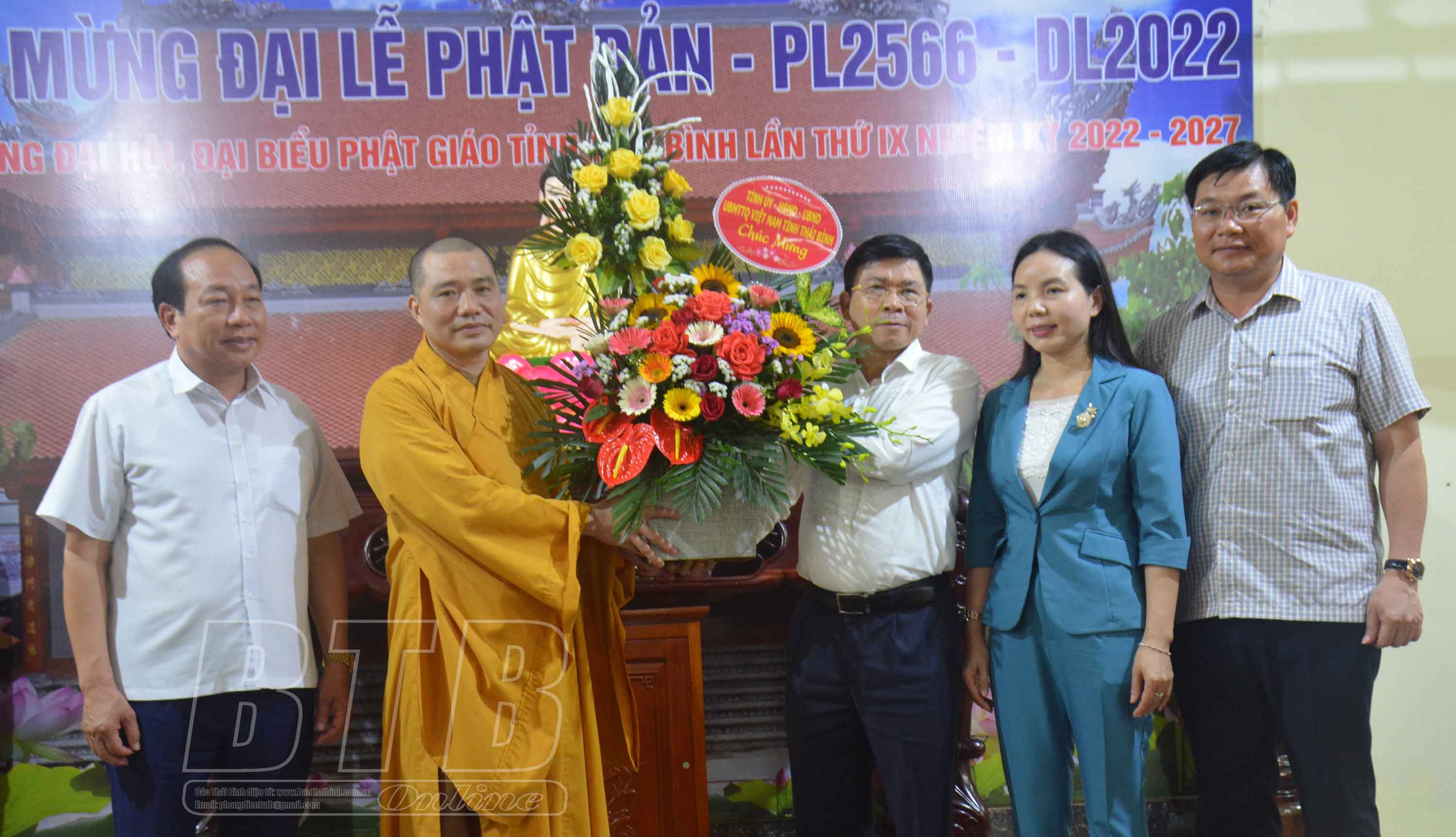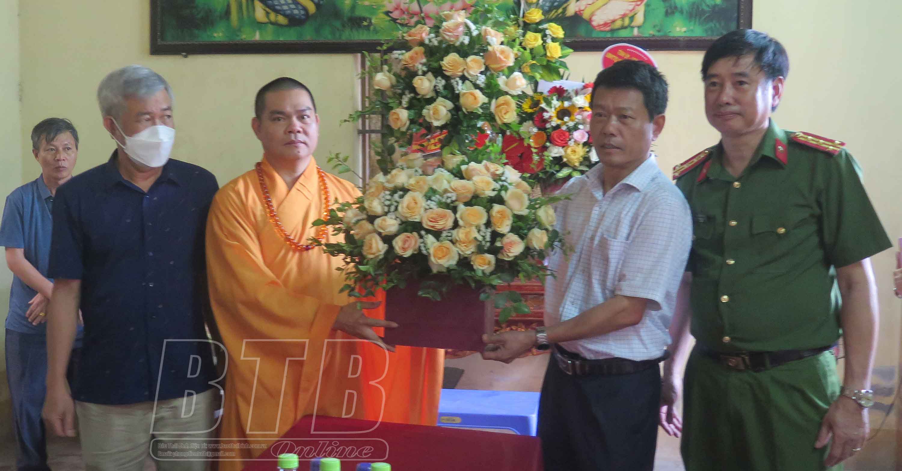 Nhân dịp đại lễ Phật đản, Phật lịch 2566 - dương lịch 2022, sáng ngày 10/5, các đồng chí lãnh đạo tỉnh đã đến thăm, chúc mừng các chức sắc, tăng ni, tín đồ Phật tử tại các huyện: Vũ Thư, Thái Thụy, Tiền Hải, Hưng Hà, Đông Hưng và thành phố Thái Bình.