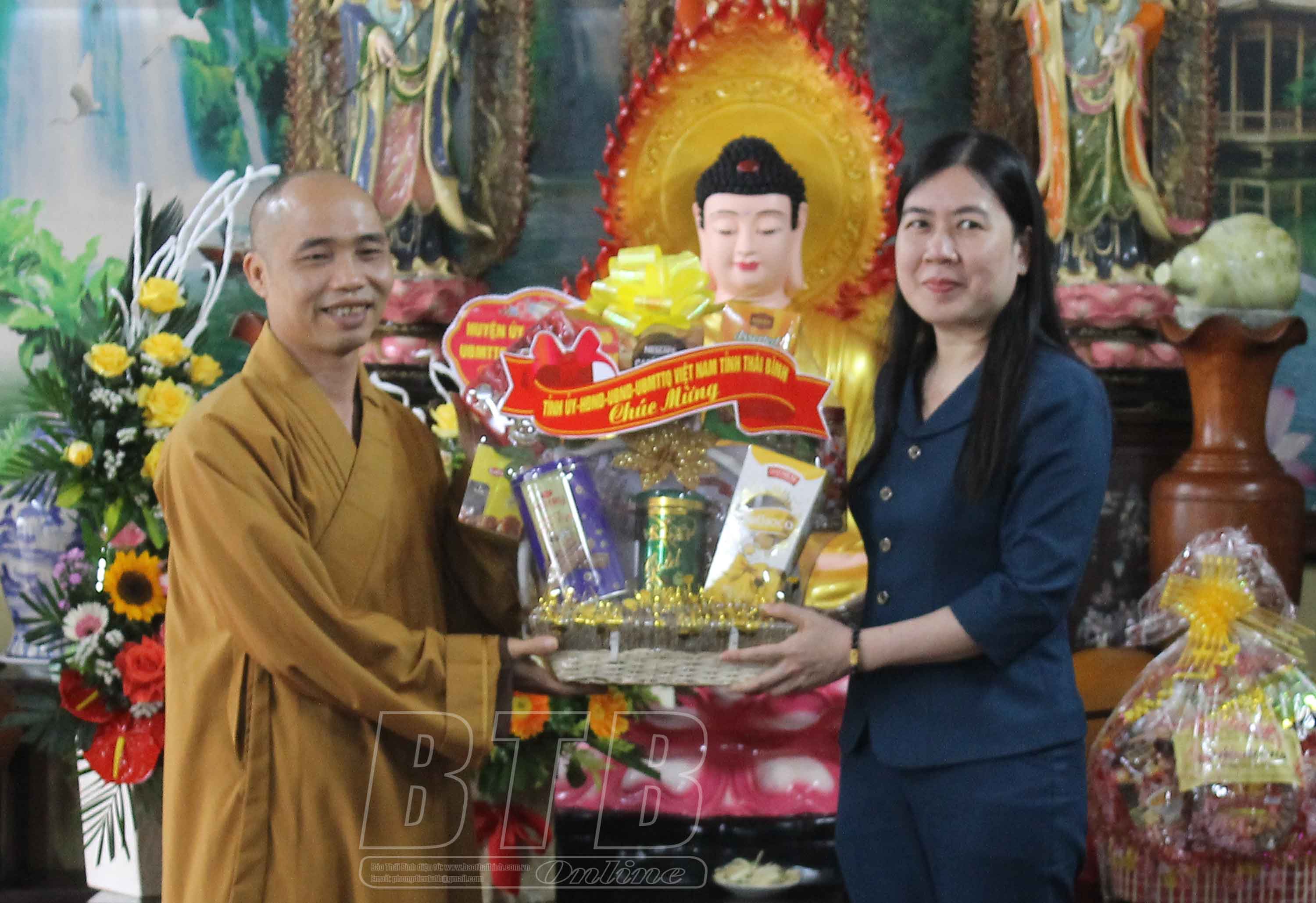 * Tại huyện Tiền Hải, các đồng chí: Phạm Văn Tuân, Ủy viên Ban Thường vụ, Trưởng ban Tổ chức Tỉnh ủy; Ngô Thị Kim Hoàn, Ủy viên Ban Thường vụ, Chủ nhiệm Ủy ban kiểm tra Tỉnh ủy đã đến thăm, chúc mừng Thượng tọa Thích Thanh Bản, Ủy viên thường trực Ban Trị sự Giáo hội Phật giáo Việt Nam tỉnh, Trưởng ban Trị sự Giáo hội Phật giáo Việt Nam huyện Tiền Hải, trụ trì chùa Nguyệt Quang, xã Tây Tiến; Đại đức Thích Minh Thái, Ủy viên Ban Trị sự Giáo hội Phật giáo Việt Nam tỉnh, trụ trì chùa Long Hưng, xã Nam Hưng.
