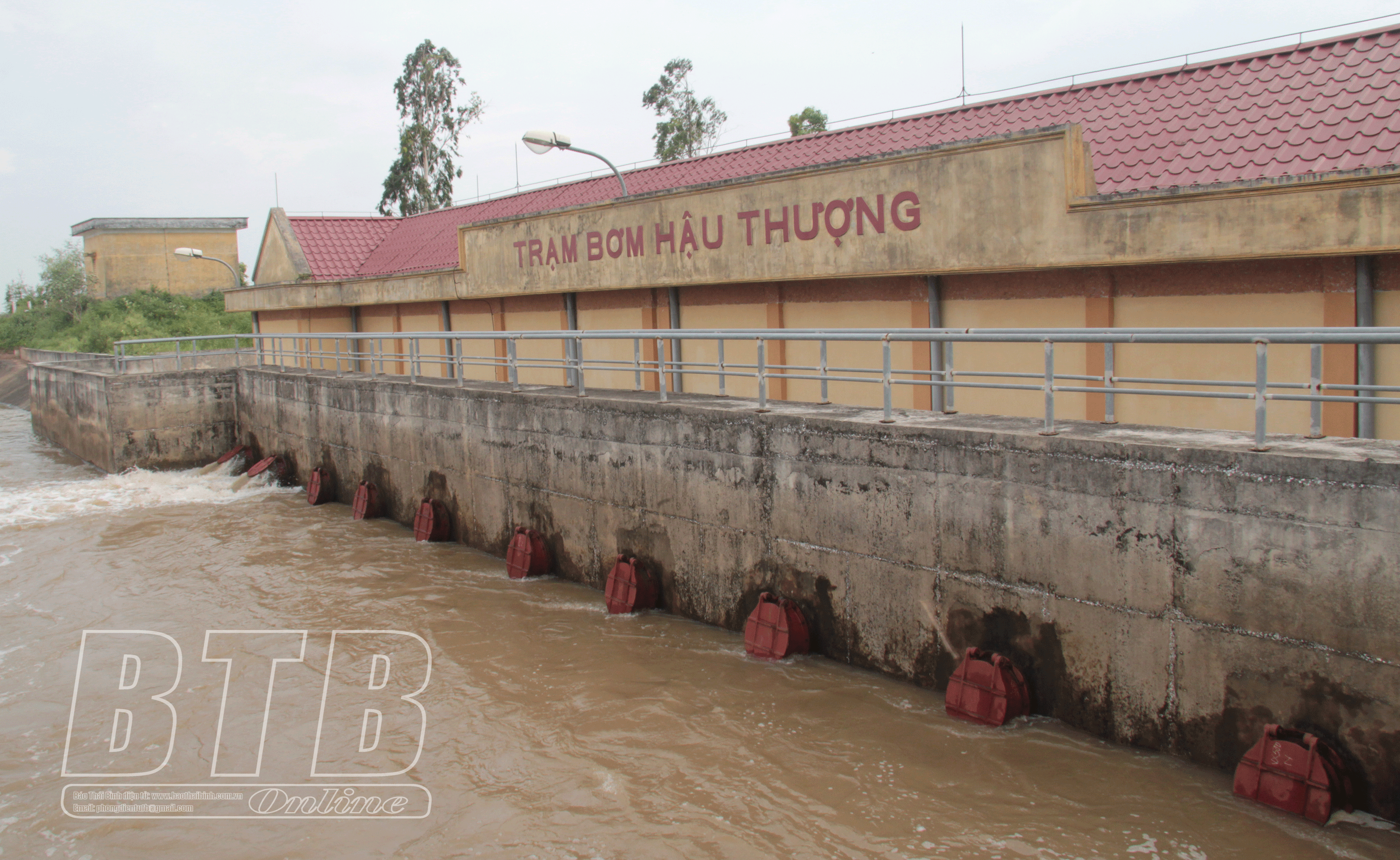 Trạm bơm Hậu Thượng bơm tiêu nước phòng chống úng cho lúa và rau màu. Ảnh: Đỗ Hiền