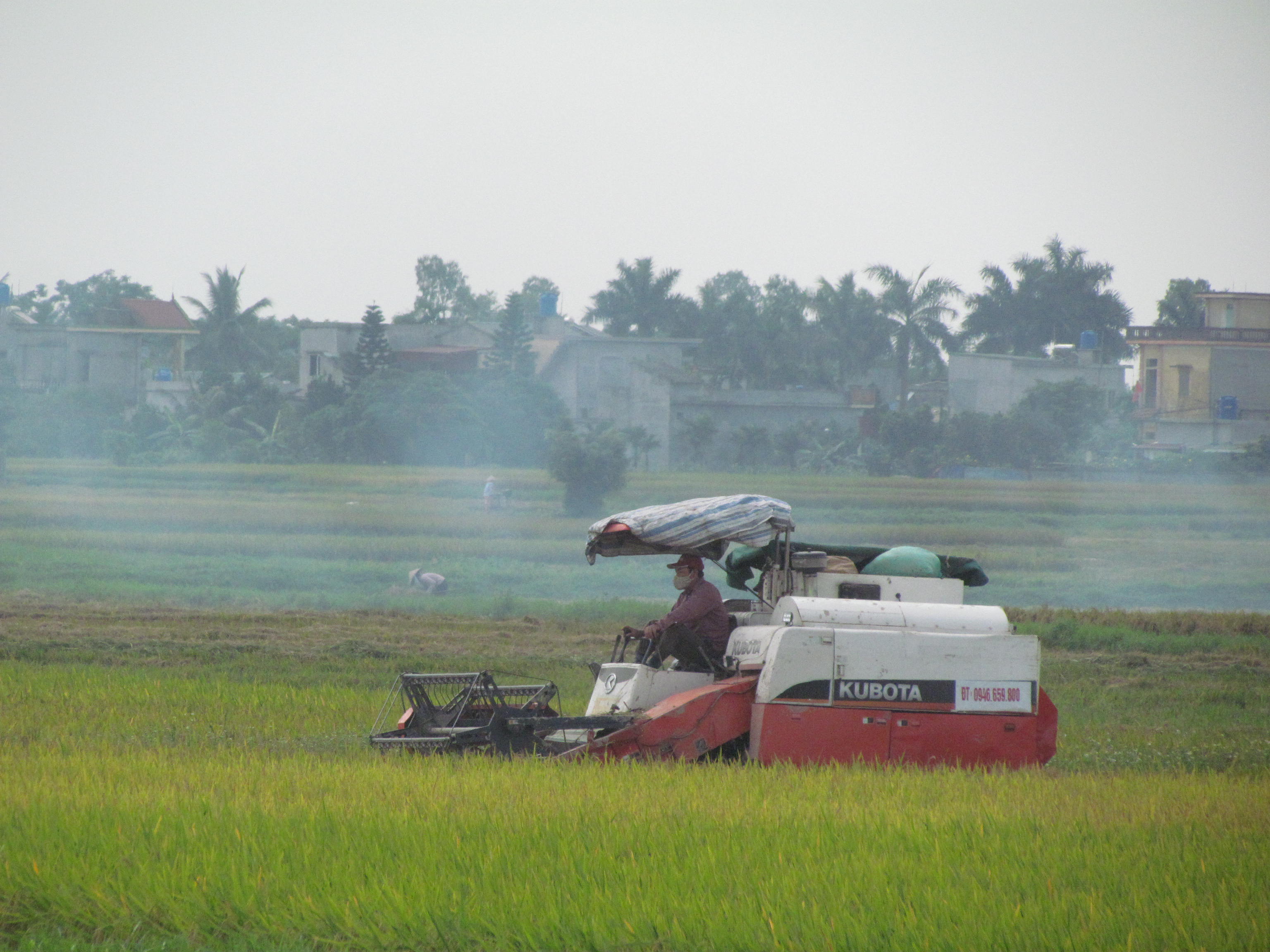 Nông dân xã Thống Nhất (Hưng Hà) thu hoạch lúa mùa. Ảnh: Mai Thư