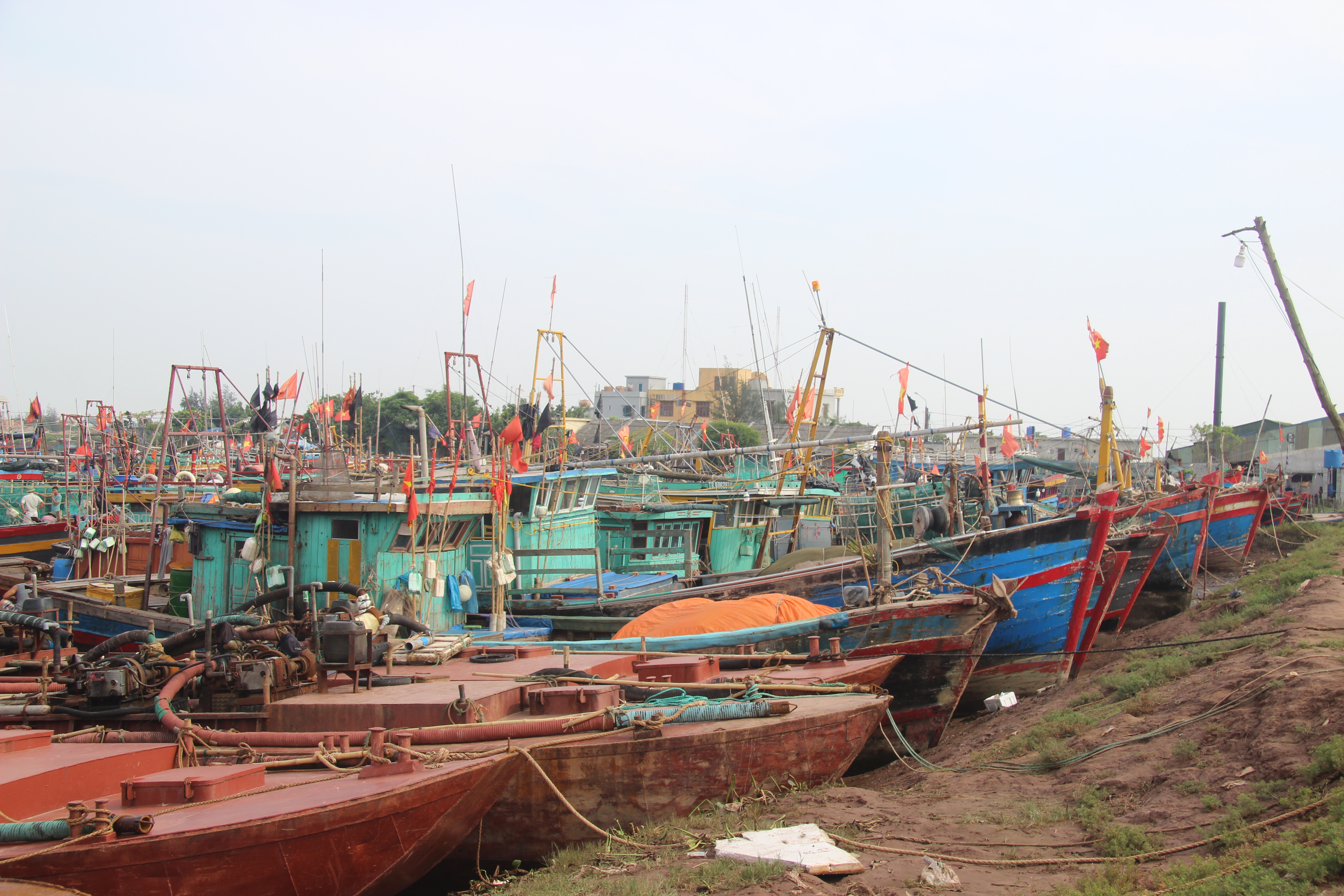 Tàu thuyền của ngư dân huyện Tiền Hải neo đậu an toàn tại bến cá Cửa Lân. Ảnh: Mạnh Thắng