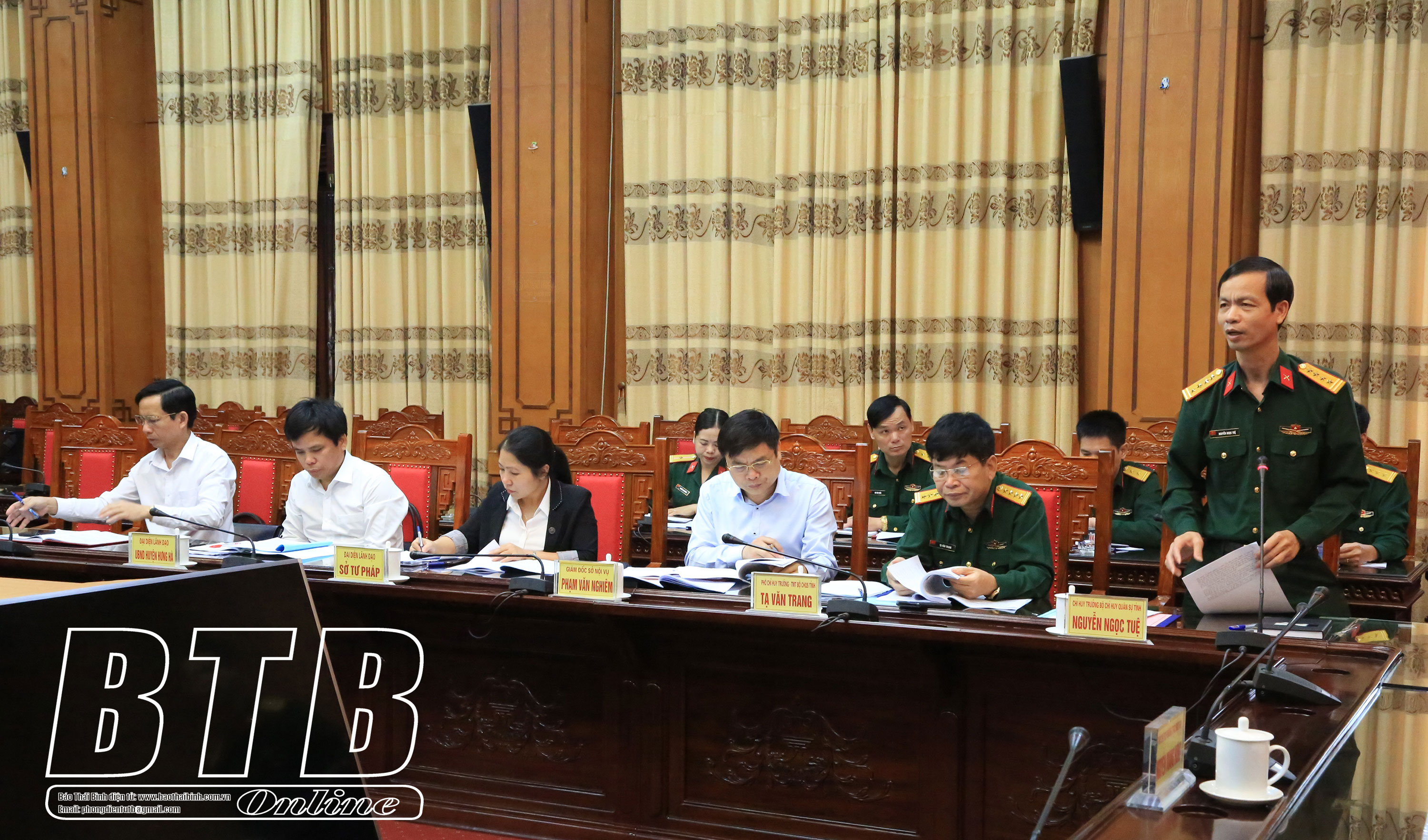 Các đồng chí: Vũ Kim Cứ, Ủy viên Ban Thường vụ Tỉnh ủy, Giám đốc Sở Kế hoạch và Đầu tư; Đại tá Nguyễn Ngọc Tuệ, Ủy viên Ban Thường vụ Tỉnh ủy, Chỉ huy trưởng Bộ CHQS tỉnh dự họp.