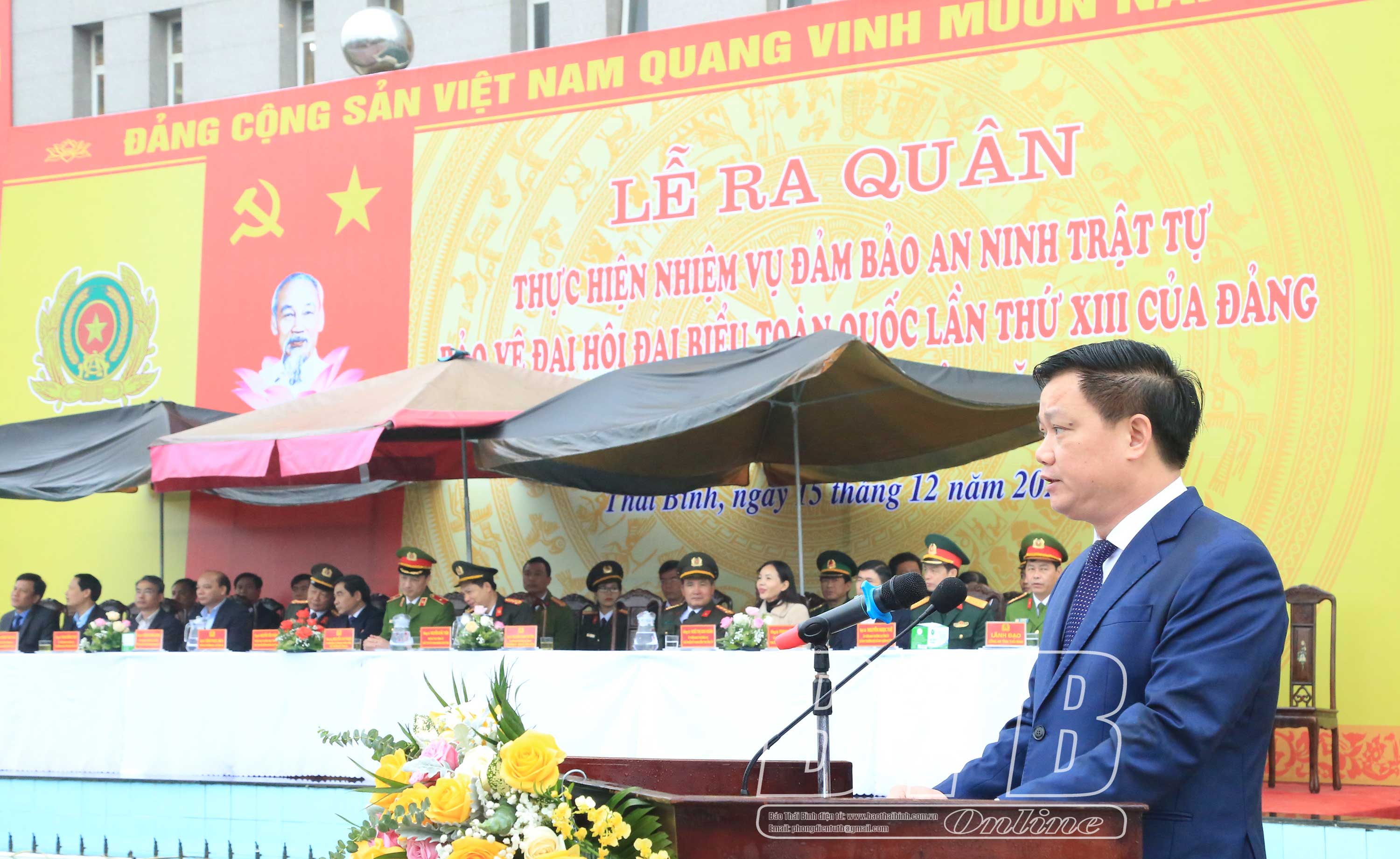 Tại lễ ra quân, Đại tá Nguyễn Thanh Trường, Ủy viên Ban Thường vụ Tỉnh ủy, Giám đốc Công an tỉnh đã phát lệnh ra quân thực hiện nhiệm vụ bảo vệ an ninh trật tự, bảo vệ Đại hội đại biểu toàn quốc lần thứ XIII của Đảng và tết Nguyên đán Tân Sửu năm 2021.