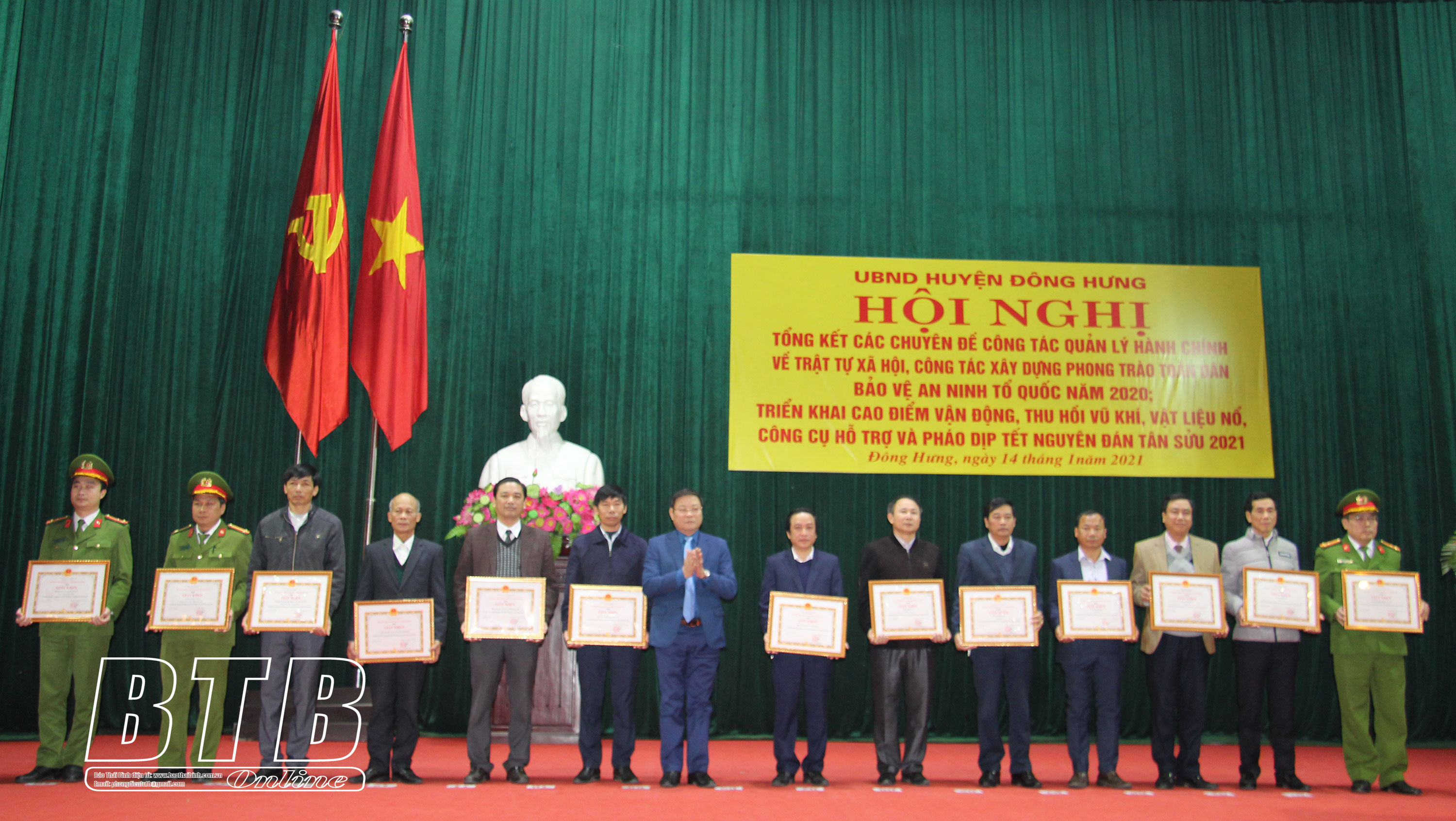 Năm 2021, đặc biệt là dịp trước, trong và sau tết Nguyên đán Tân Sửu, huyện Đông Hưng chỉ đạo Công an huyện đẩy mạnh thực hiện phong trào “Toàn dân bảo vệ an ninh Tổ quốc”, mở đợt cao điểm tấn công, trấn áp tội phạm và vận động, thu hồi vũ khí, vật liệu nổ, công cụ hỗ trợ và pháo dịp tết Nguyên đán Tân Sửu 2021. Đồng thời làm tốt công tác tuyên truyền, vận động, thuyết phục quần chúng nhân dân thực hiện tốt chủ trương, đường lối của Đảng, chính sách, pháp luật của Nhà nước, không để xảy ra khiếu kiện đông người, vượt cấp, không để xảy ra “điểm nóng” về an ninh trật tự, giảm tai nạn giao thông.