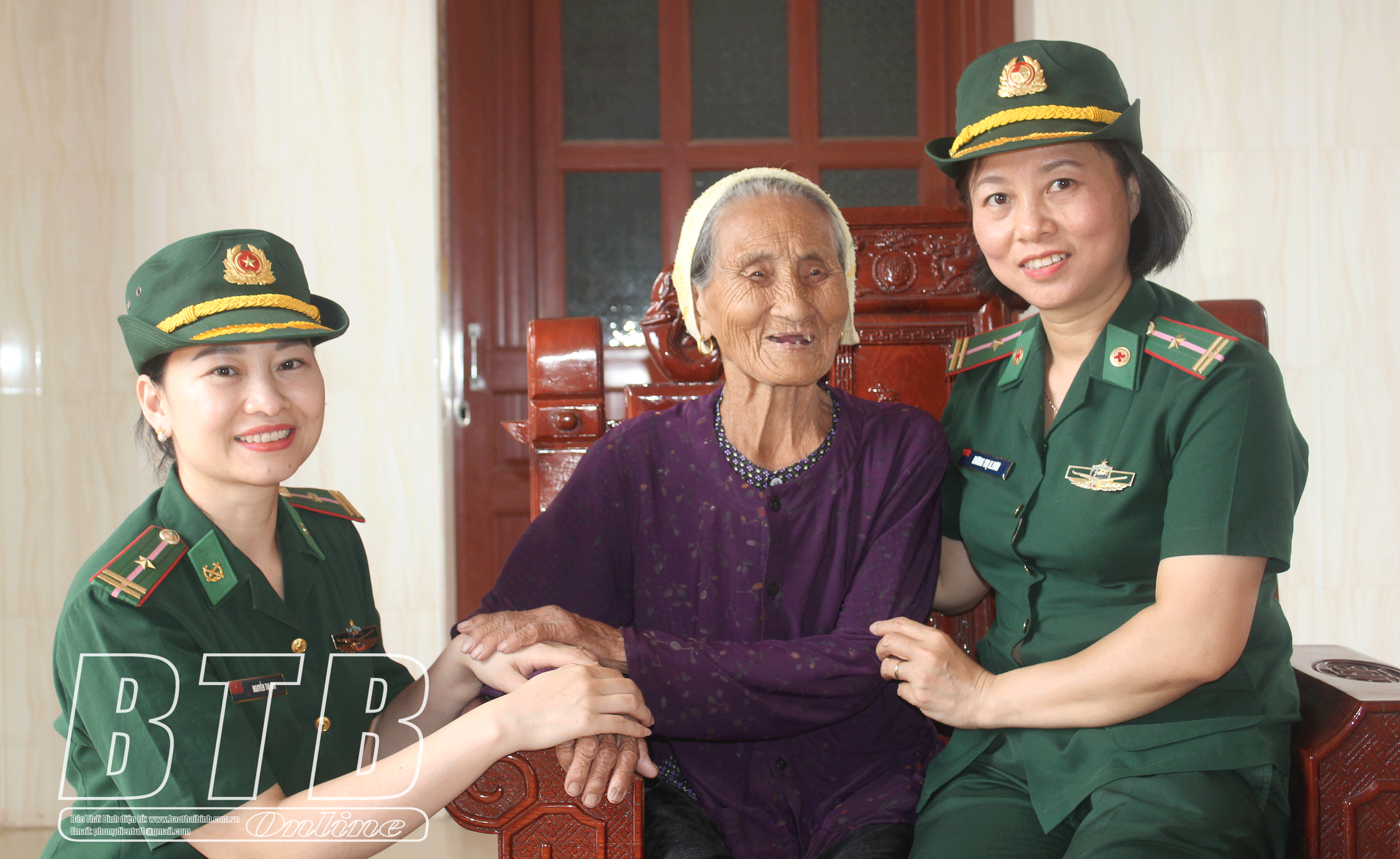 Cán bộ, hội viên Phụ nữ Bộ đội Biên phòng tỉnh thăm Bà mẹ Việt Nam anh hùng Trần Thị Riệu, xã Đông Hoàng (Tiền Hải). Ảnh tư liệu