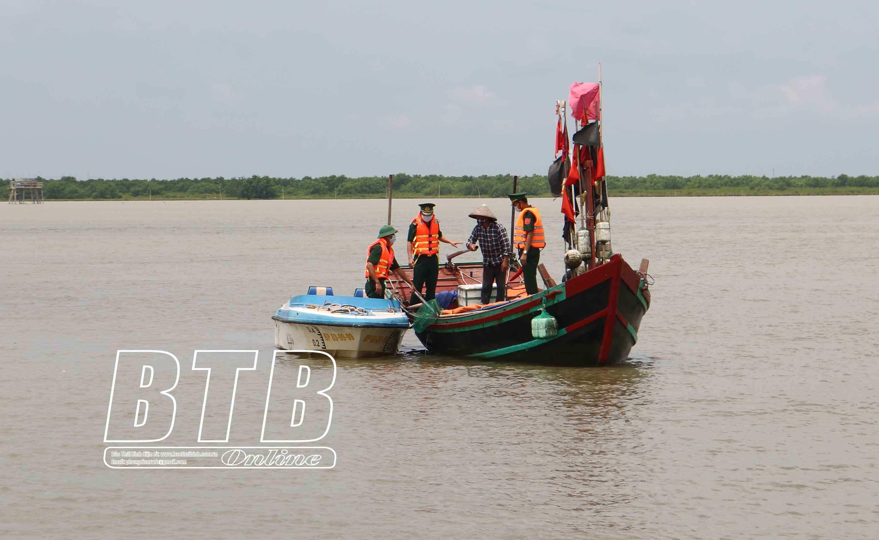 Trạm Kiểm soát biên phòng Cồn Vành kiểm tra người, phương tiện đánh cá trên khu vực cửa sông Hồng.