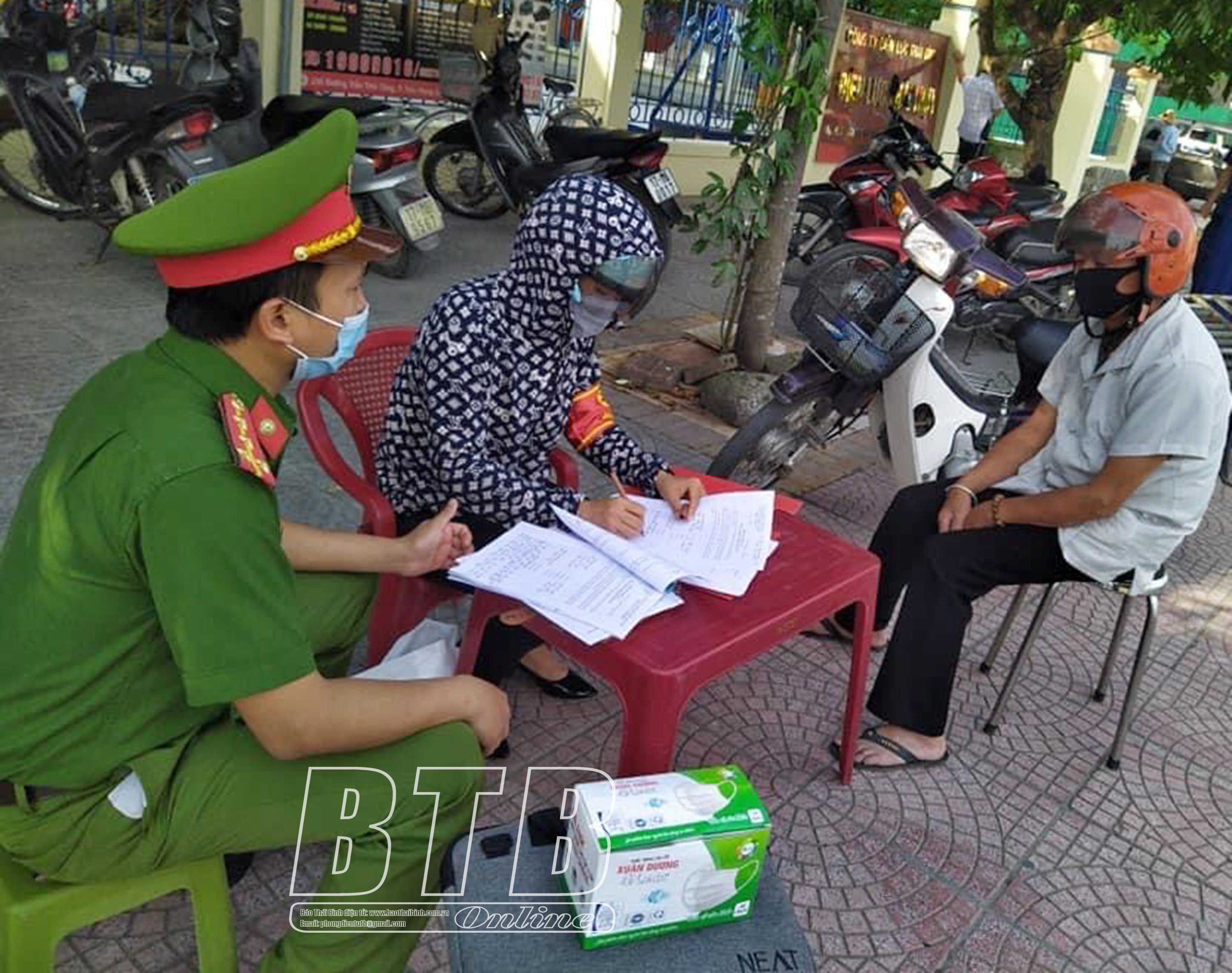 Công an thị trấn Diêm Điền tuần tra, xử lý trường hợp vi phạm quy định về phòng, chống dịch Covid-19.