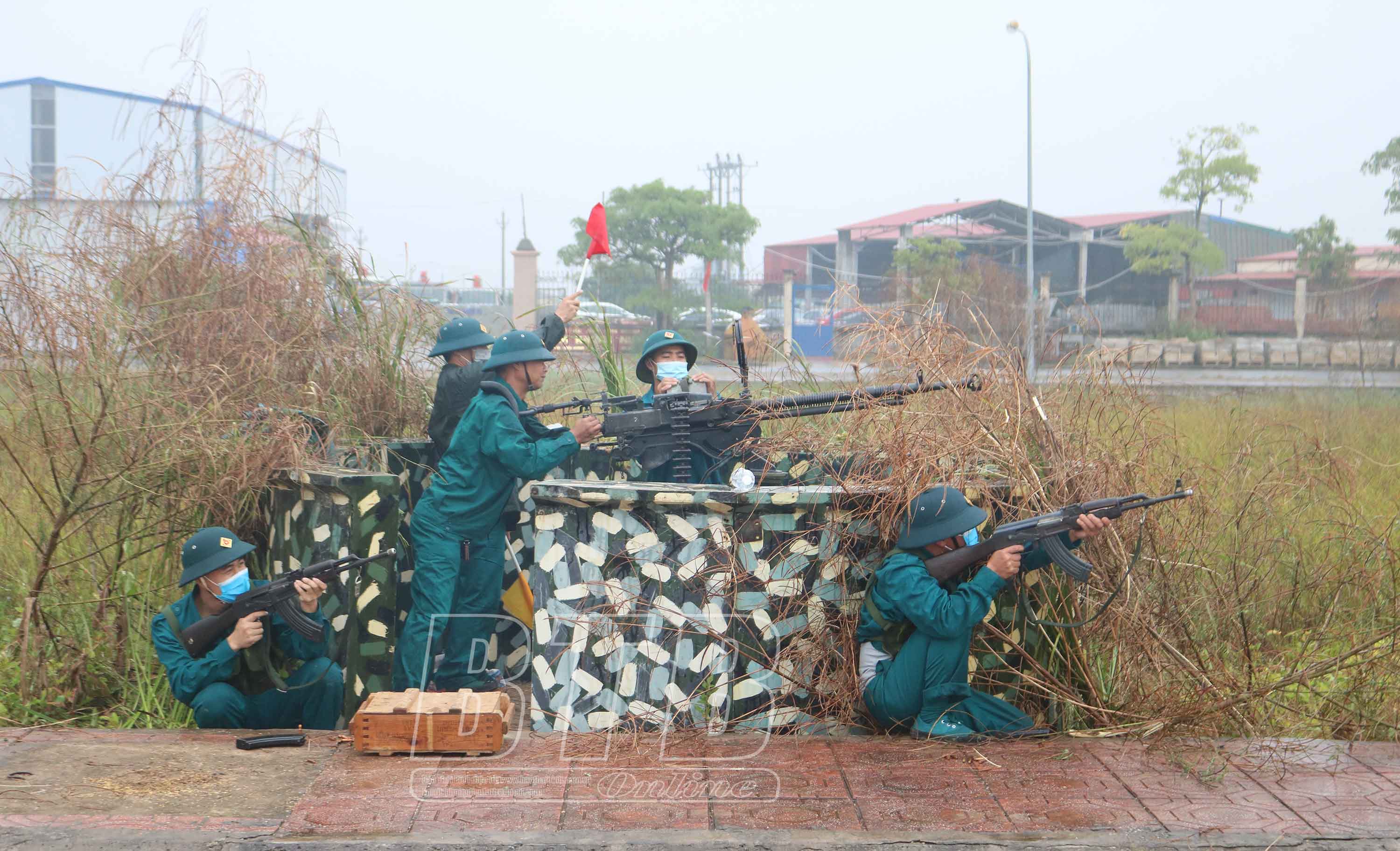 Lực lượng vũ trang huyện Kiến Xương diễn tập thực hành triển khai trận địa, đánh địch tiến công hỏa lực bảo vệ mục tiêu.