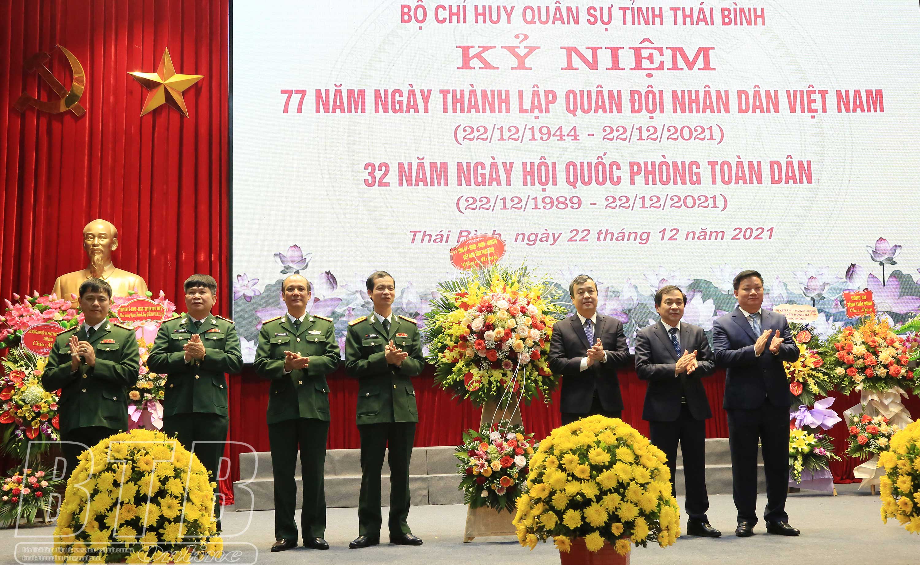 Thay mặt Tỉnh ủy, HĐND, UBND tỉnh, đồng chí Bí thư Tỉnh ủy gửi lời chúc mừng tốt đẹp nhất đến cán bộ, chiến sĩ lực lượng vũ trang (LLVT) tỉnh; đồng thời biểu dương, ghi nhận, đánh giá cao những kết quả LLVT tỉnh đã đạt được trong thời gian qua. Toàn lực lượng đã luôn nỗ lực cố gắng hoàn thành xuất sắc mọi nhiệm vụ do Quân khu và tỉnh giao, bảo đảm an ninh chính trị, trật tự an toàn xã hội của tỉnh; gắn kết nhiệm vụ quốc phòng với phát triển kinh tế giúp Thái Bình có sự vươn lên mạnh mẽ. Đặc biệt, LLVT luôn xông pha đi đầu cùng các lực lượng khác trong công tác phòng, chống dịch Covid-19.