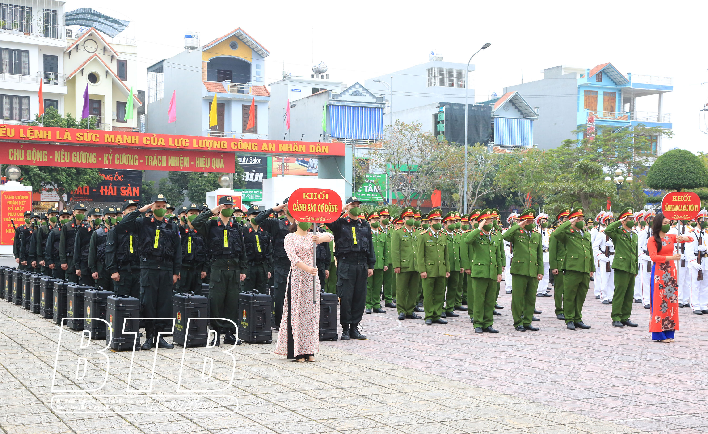 Các lực lượng dự lễ ra quân.