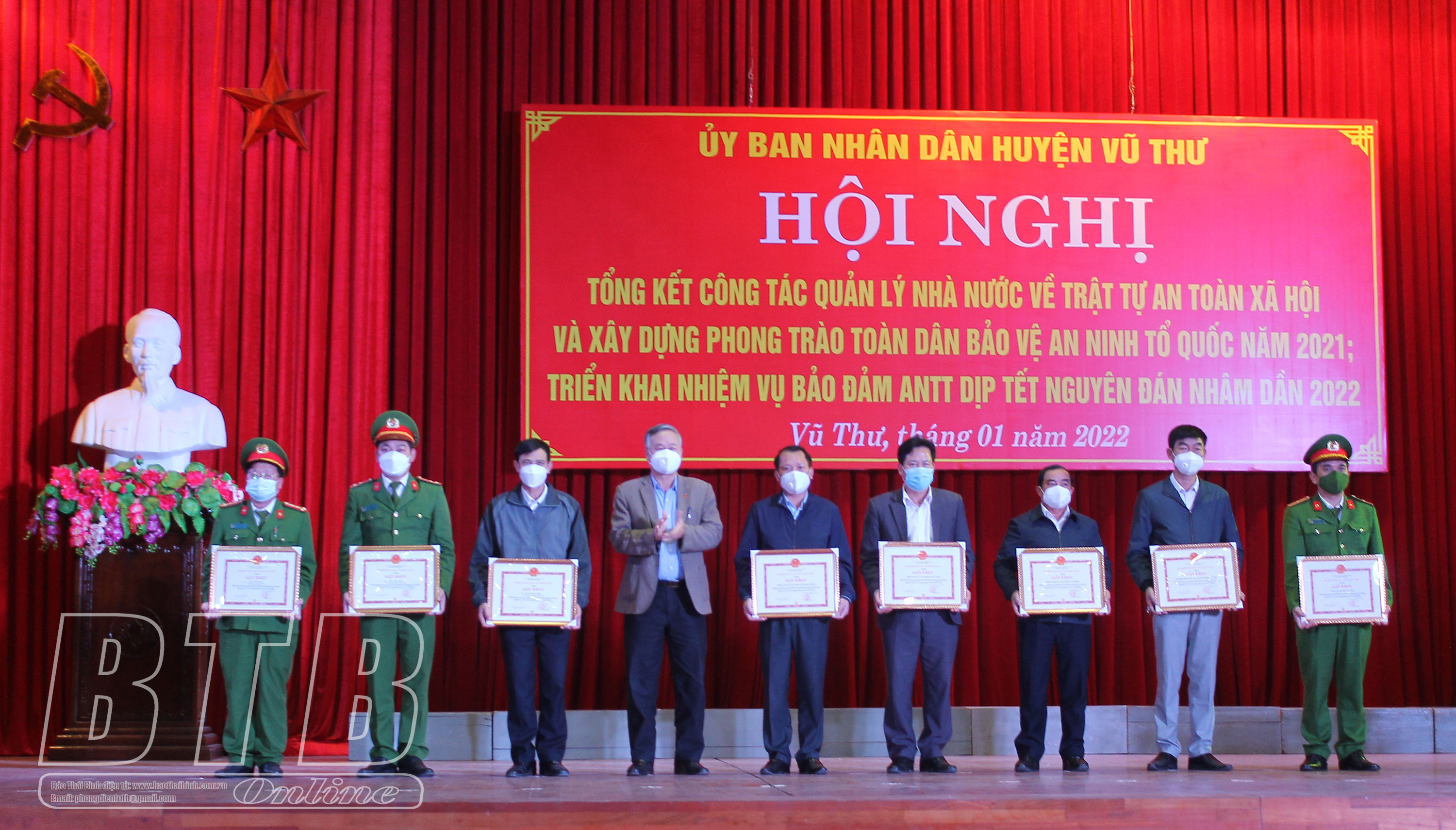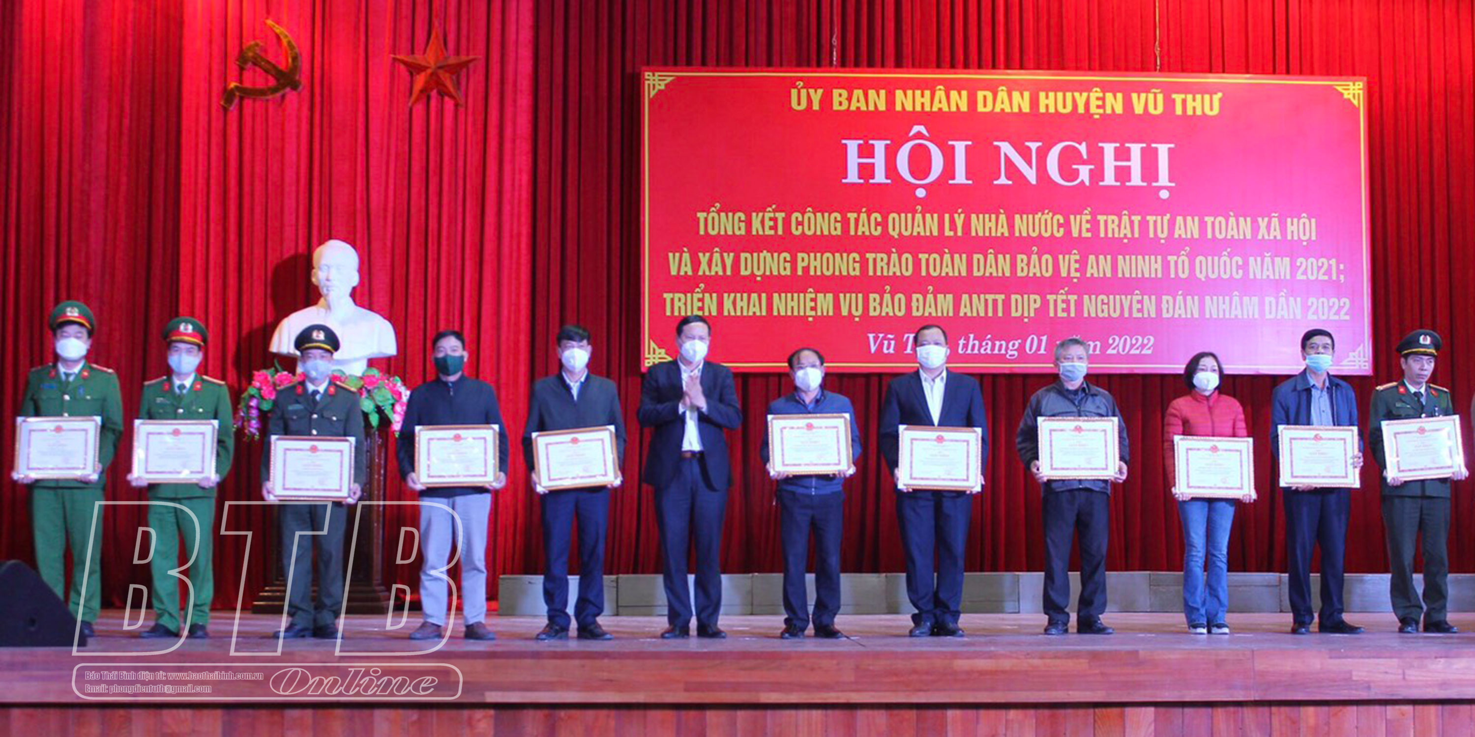 Tại hội nghị, lãnh đạo Công an tỉnh, Huyện ủy, HĐND Vũ Thư đã trao giấy khen của Công an tỉnh và UBND huyện cho 31 tập thể, cá nhân có thành tích tiêu biểu trong phong trào toàn dân bảo vệ an ninh Tổ quốc; công tác bảo đảm an ninh trật tự, an toàn giao thông, phòng chống cháy nổ năm 2021.