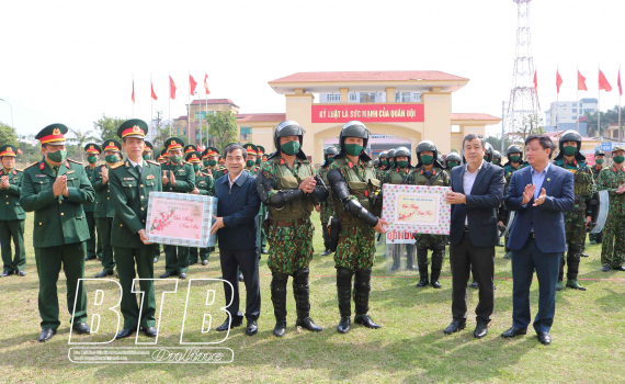 Đồng chí Bí thư Tỉnh ủy và đoàn công tác tặng quà tết và gửi lời chúc mừng năm mới tới toàn thể cán bộ, chiến sĩ lực lượng vũ trang tỉnh luôn mạnh khỏe, hạnh phúc, hoàn thành xuất sắc mọi nhiệm vụ được giao.