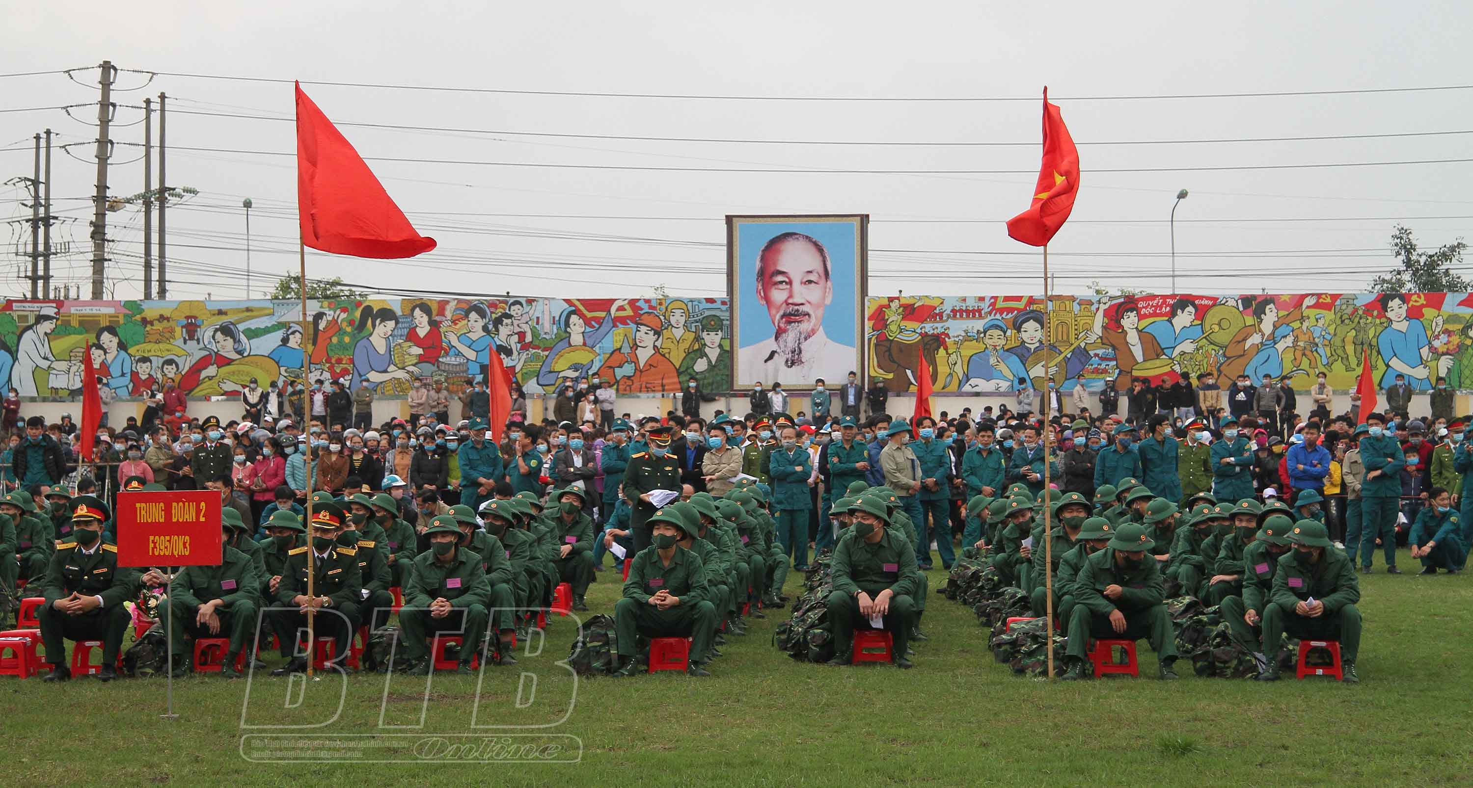 Thanh niên huyện Quỳnh Phụ hăng hái lên đường thực hiện nghĩa vụ quân sự.