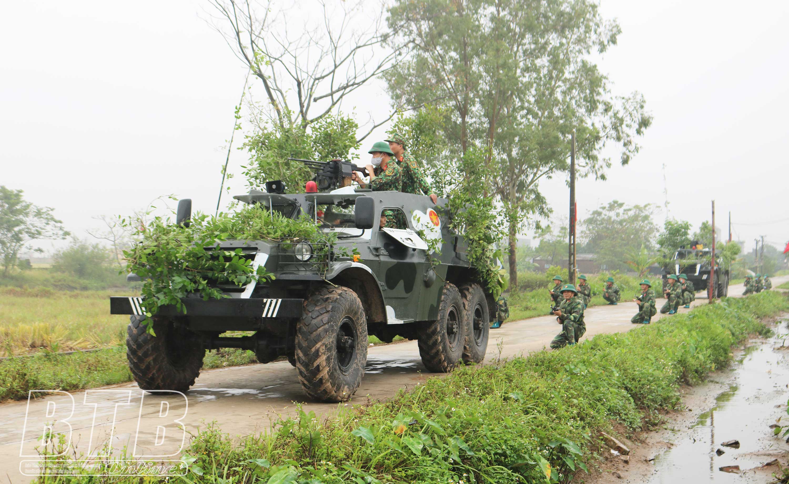 Thực binh đánh địch đổ bộ đường không trong diễn tập chiến đấu khu vực phòng thủ huyện Hưng Hà.