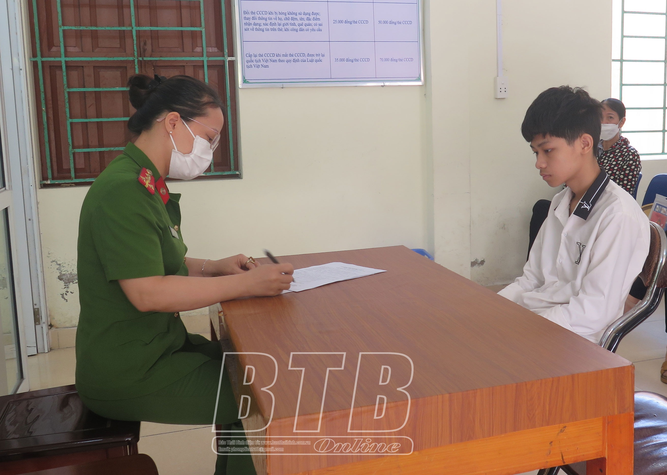 Công an huyện Kiến Xương thu nhận hồ sơ cấp tài khoản định danh điện tử cho công dân.