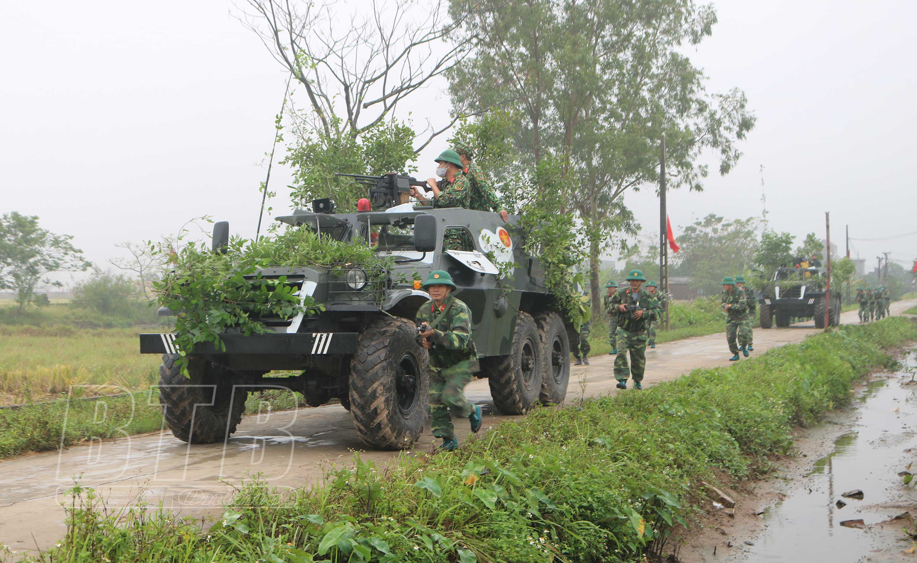 Đại đội Thiết giáp 22 triển khai đội hình trong diễn tập khu vực phòng thủ.
