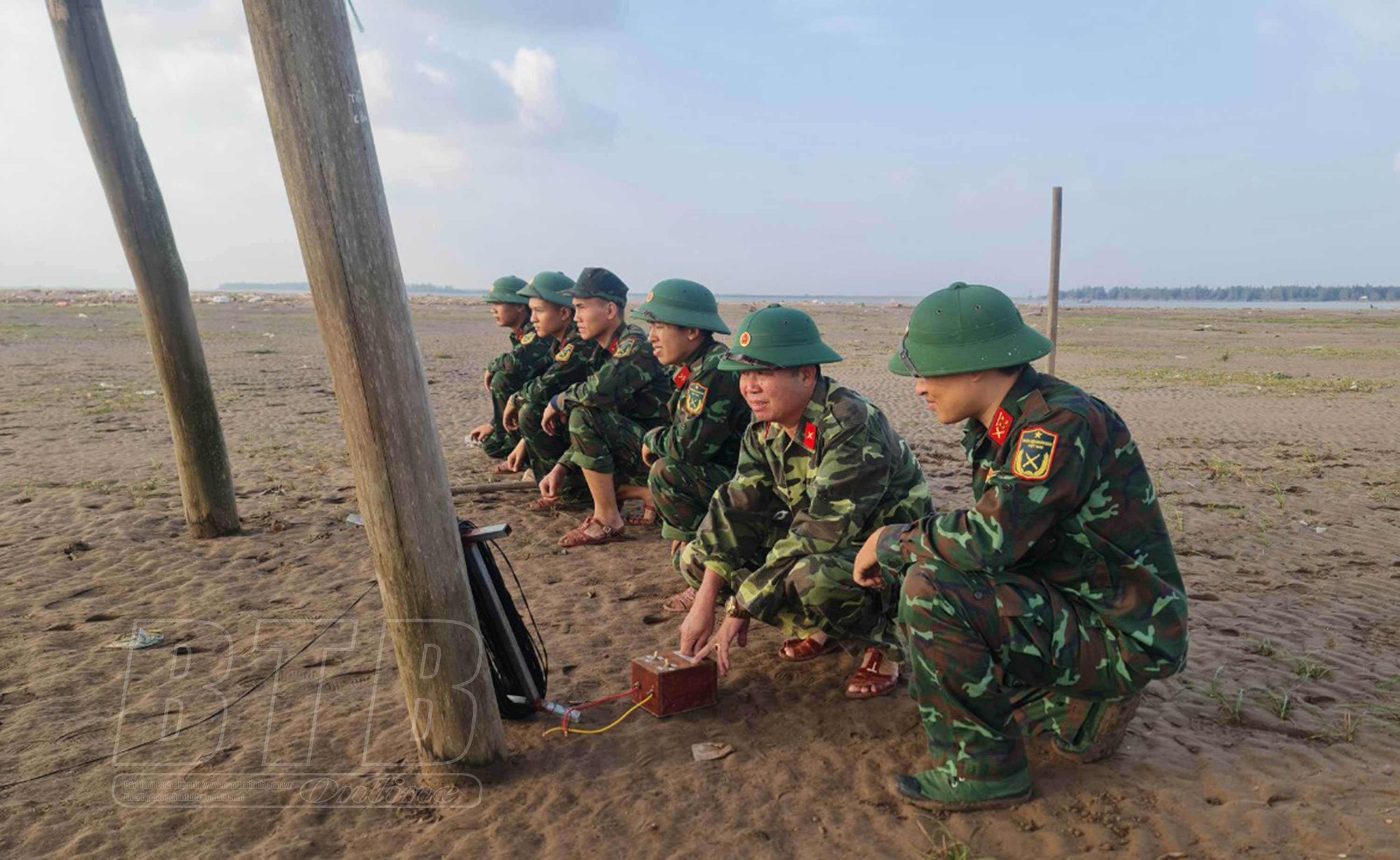 Sau gần 5 giờ trục vớt, di dời, số bom, đạn trên được bộ đội công binh vận chuyển và hủy nổ tại khu vực bờ biển cồn Vành (Tiền Hải) bảo đảm an toàn.