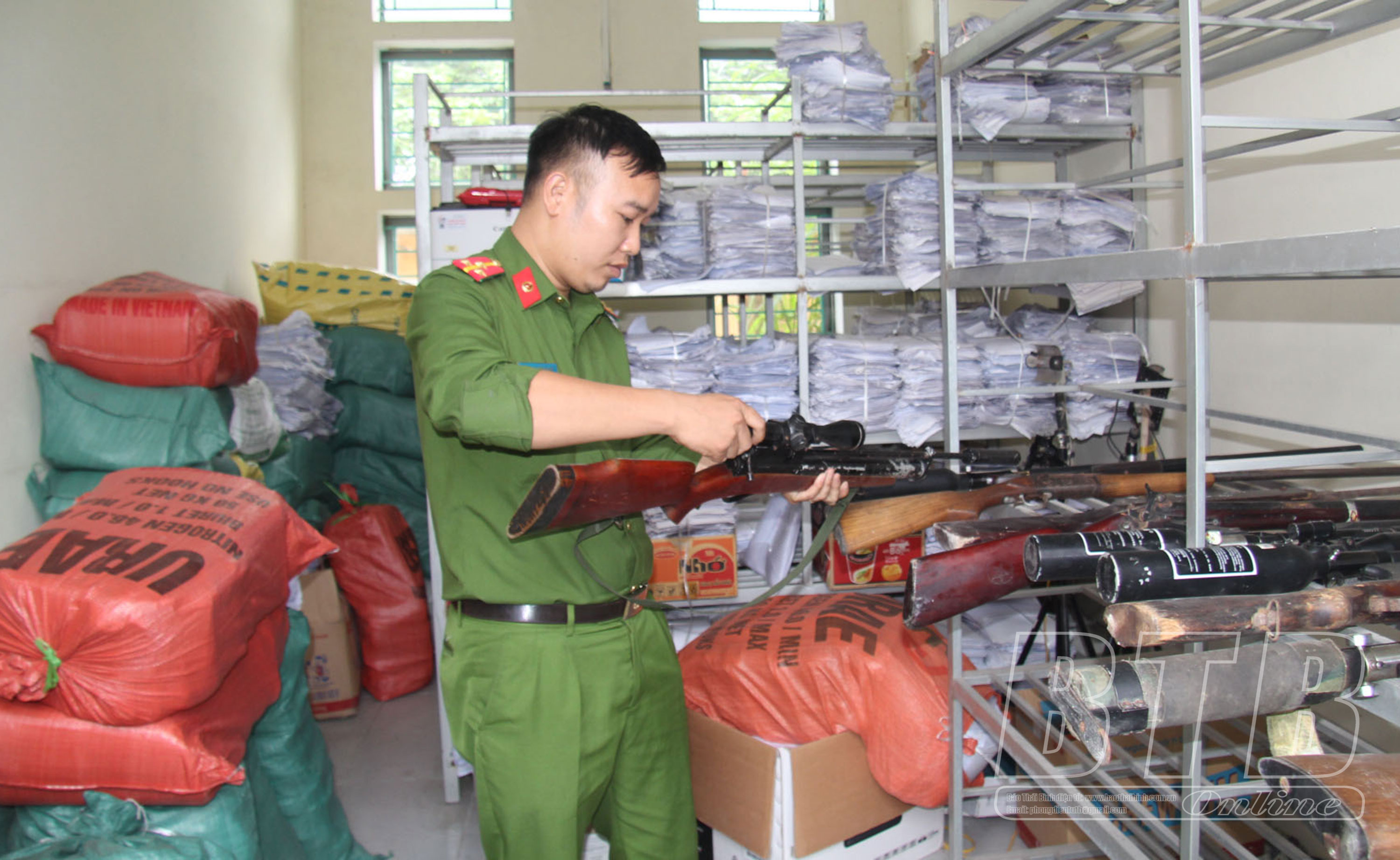 Công an huyện Hưng Hà thu giữ các công cụ hỗ trợ do người dân giao nộp.