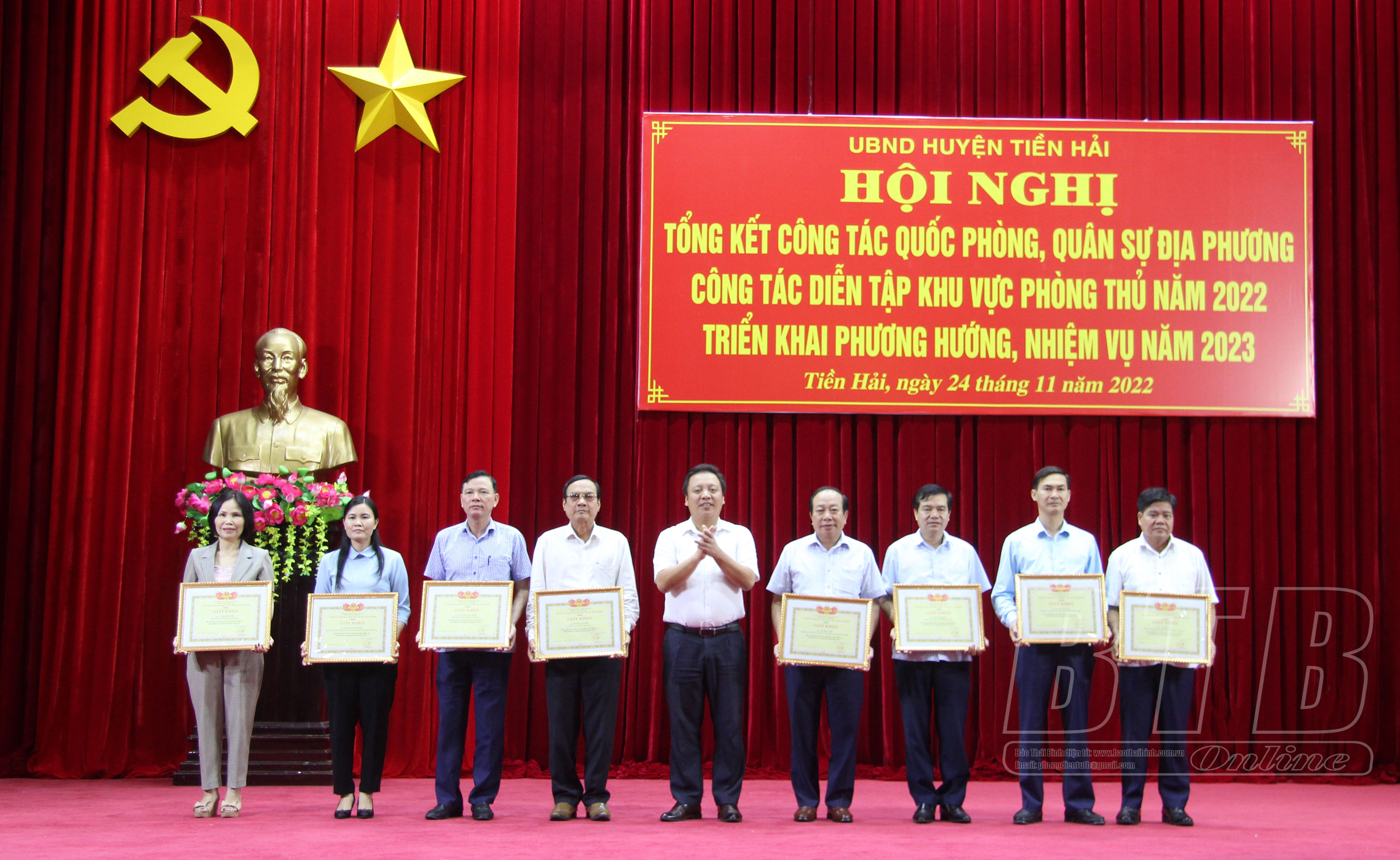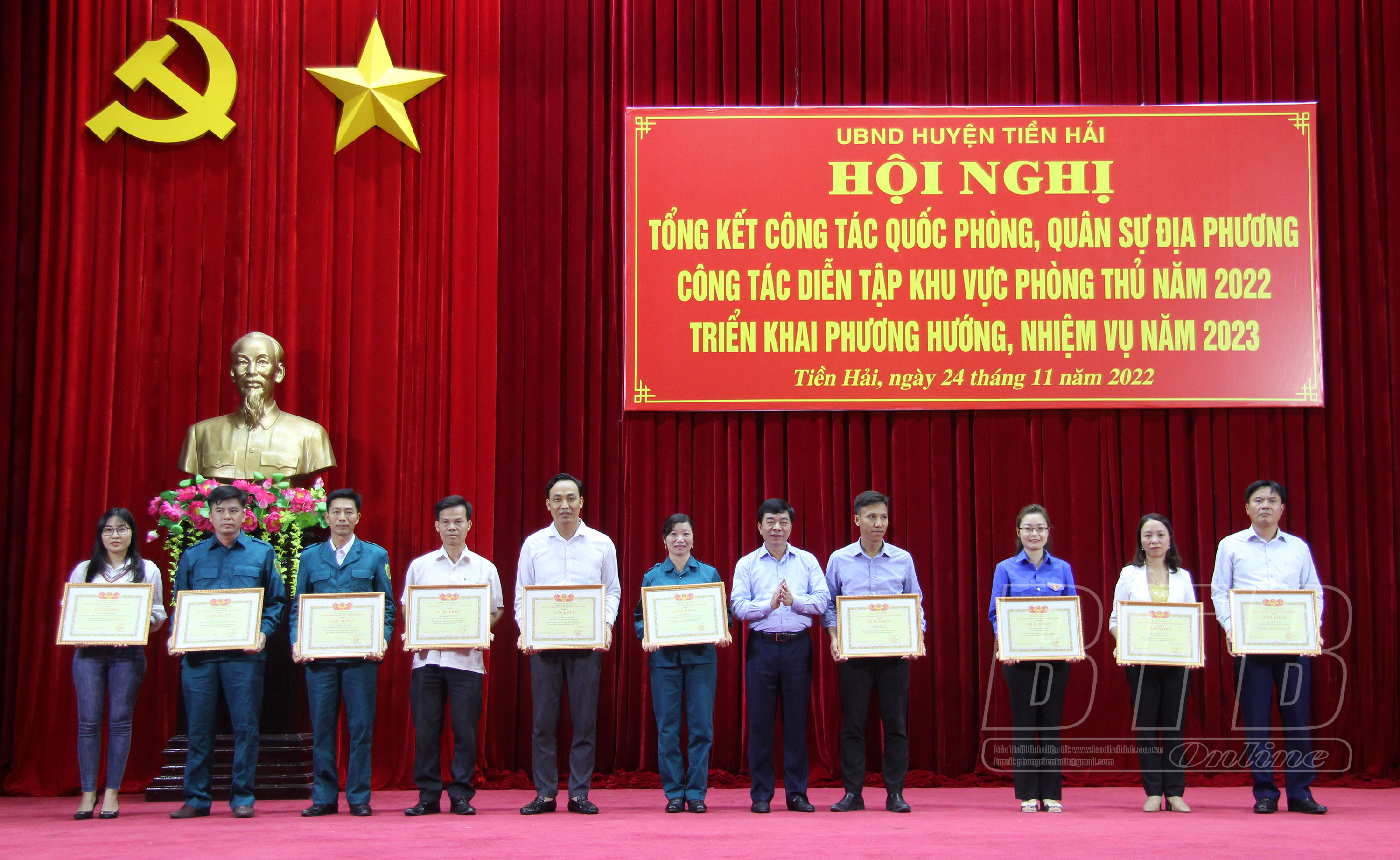 Tại hội nghị, huyện Tiền Hải đã trao giấy khen cho 78 tập thể, cá nhân đạt thành tích xuất sắc trong công tác quốc phòng, quân sự địa phương năm 2022.