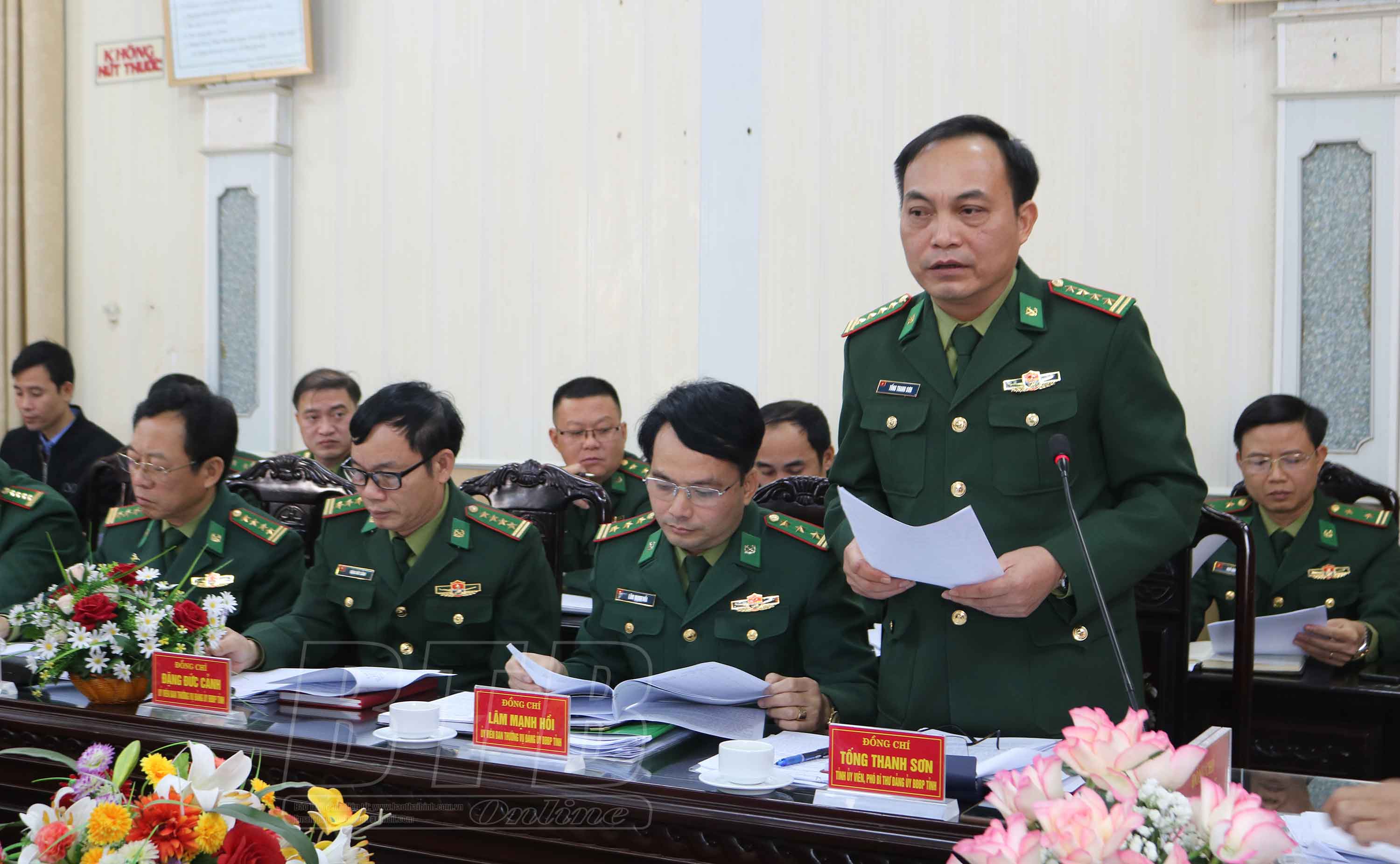 Lãnh đạo Đảng ủy Bộ chỉ huy BĐBP tỉnh phát biểu tại hội nghị.