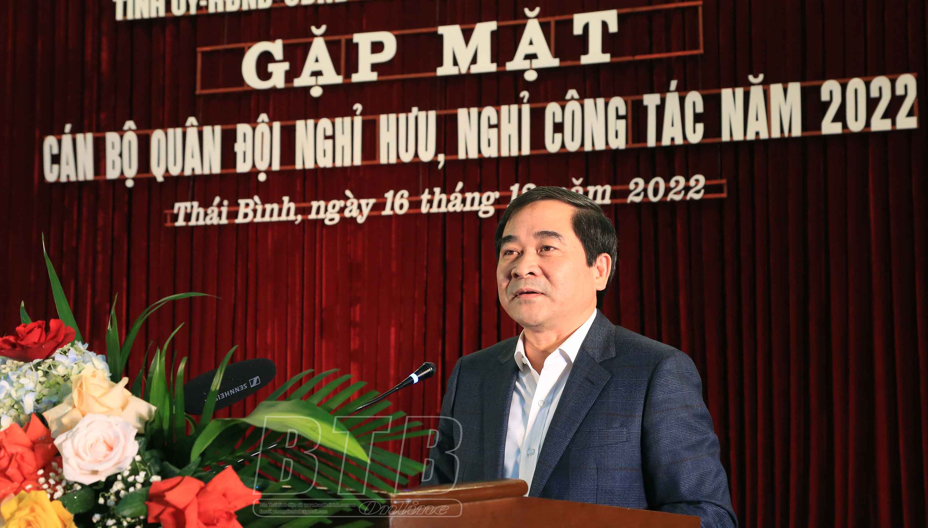 Đồng chí Phó Bí thư thường trực Tỉnh ủy, Chủ tịch HĐND tỉnh đề nghị các cán bộ quân đội đã nghỉ hưu, nghỉ công tác tích cực cùng với cấp ủy, chính quyền, hội cựu chiến binh các cấp thực hiện tốt các nhiệm vụ trọng tâm cuối năm 2022, đầu năm 2023. Trong đó tham gia tuyên truyền, vận động đẩy mạnh thực hiện các biện pháp phát triển kinh tế - xã hội theo tinh thần Nghị quyết Đại hội Đảng bộ tỉnh lần thứ XX đã đề ra; tích cực tham gia giữ vững an ninh chính trị, trật tự an toàn xã hội, phục vụ nhân dân vụ xuân, đón tết Quý Mão 2023 an toàn, vui tươi, lành mạnh; phối hợp động viên thanh niên hăng hái lên đường bảo vệ Tổ quốc, góp phần hoàn thành tốt nhiệm vụ tuyển chọn, gọi công dân nhập ngũ năm 2023...