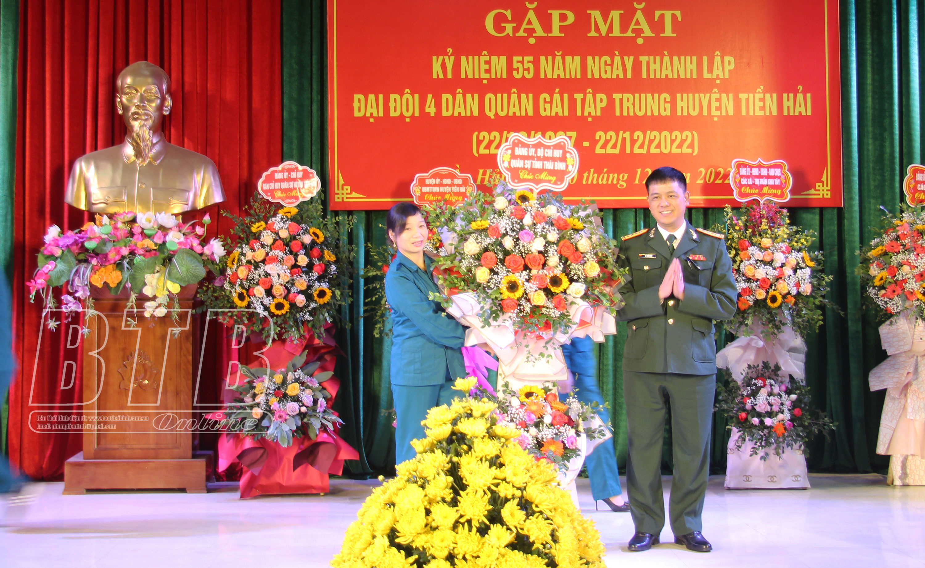 Tại lễ kỷ niệm, các đại biểu đã ôn lại truyền thống 55 năm thành lập và phát triển trưởng thành của Đại đội 4 dân quân gái. Theo đó, ngay từ đầu thành lập, Đại đội được biên chế 82 chị em, tuổi đời từ 18-25, được tổ chức 1 Trung đội pháo cao xạ 37-1mm, có nhiệm vụ bảo vệ cống Lân, các công trình tưới tiêu cho 40.000ha đất cấy lúa của 4 huyện phía Nam tỉnh.