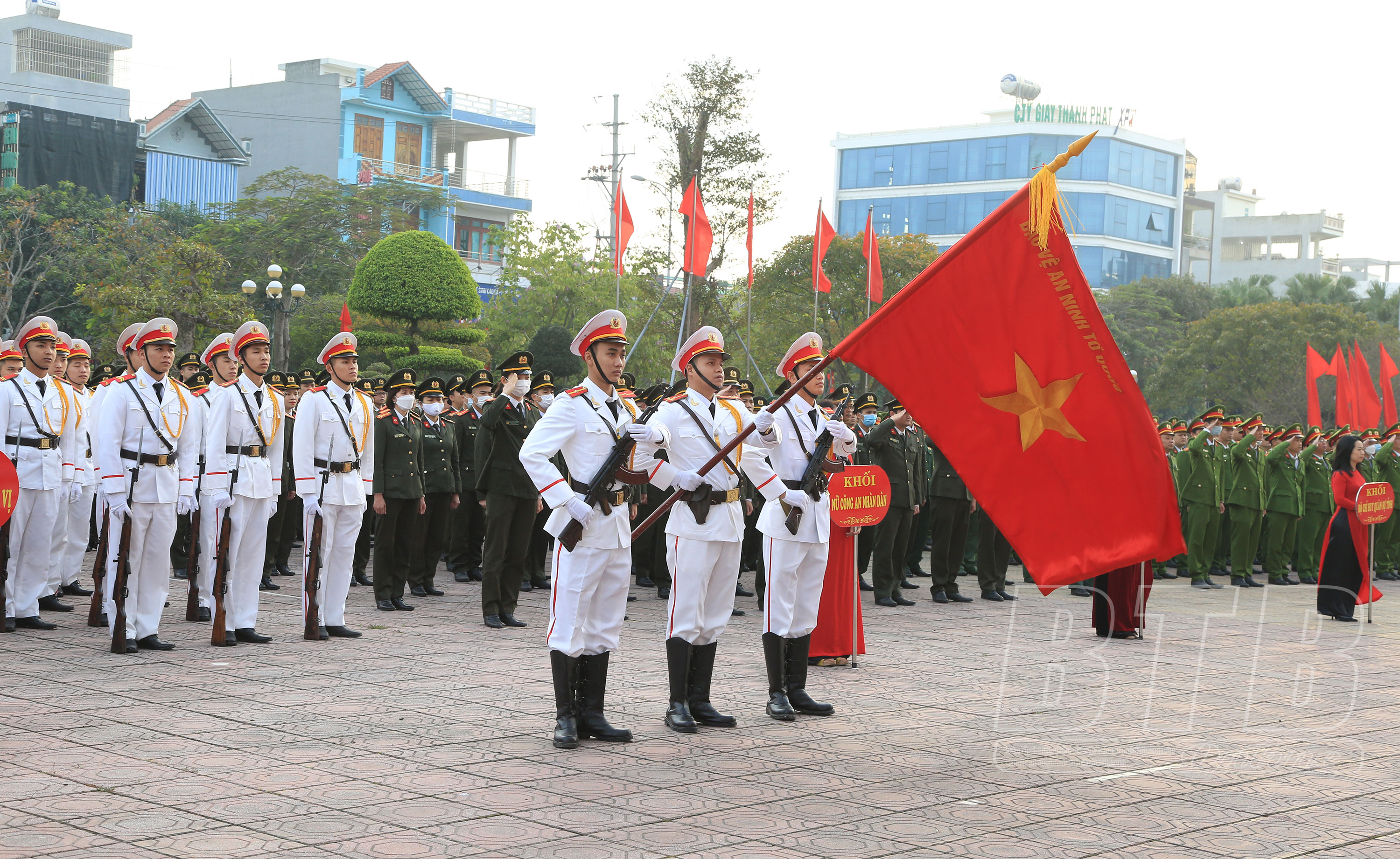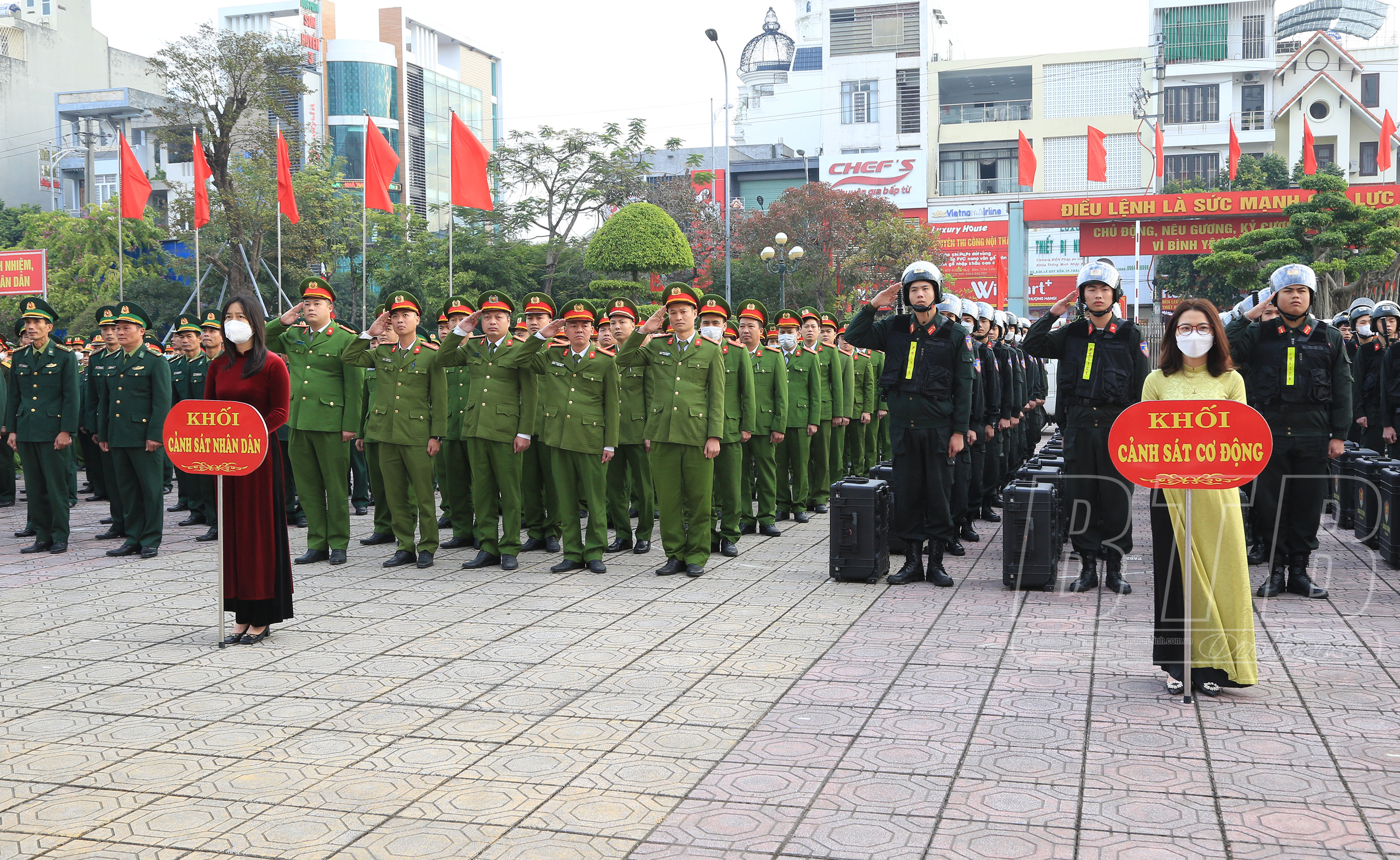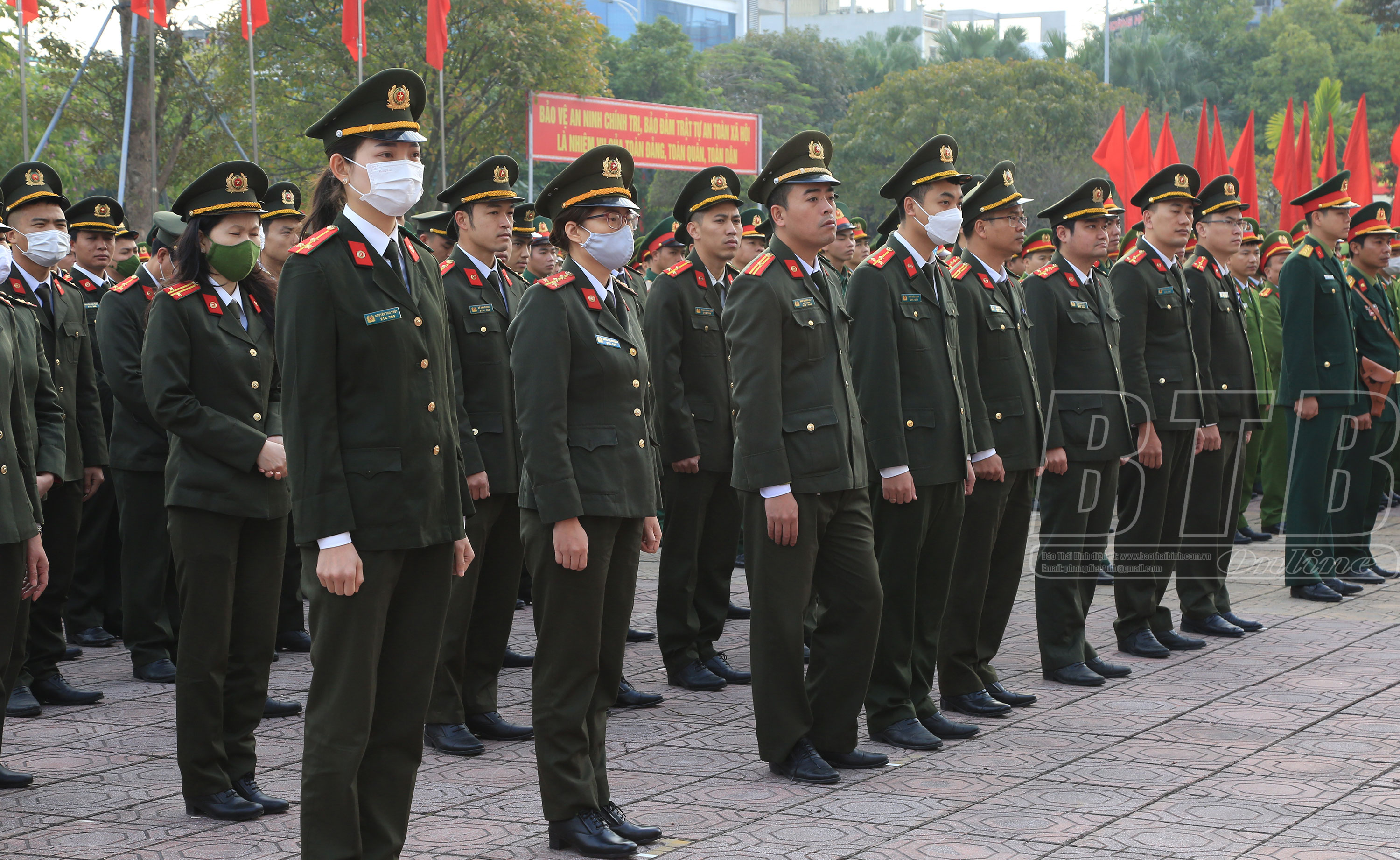 Phát biểu tại lễ ra quân, đồng chí Nguyễn Khắc Thận, Phó Bí thư Tỉnh ủy, Chủ tịch UBND tỉnh đề nghị Công an tỉnh tiếp tục triển khai thực hiện nghiêm túc, hiệu quả các chỉ thị, nghị quyết của Đảng và Nhà nước, Bộ Công an, Tỉnh ủy, HĐND, UBND tỉnh về bảo vệ an ninh quốc gia, bảo đảm trật tự an toàn xã hội, nhất là Chỉ thị số 16 ngày 2/12/2022 của Ban Thường vụ Tỉnh ủy Thái Bình về việc tổ chức tết Quý Mão năm 2023 và Chỉ thị số 16, ngày 21/11/2022 của UBND tỉnh về công tác bảo đảm an ninh, trật tự những tháng cuối năm và tết Nguyên đán Quý Mão năm 2023. Tăng cường nắm bắt tình hình trên không gian mạng, kịp thời nhận diện, phòng ngừa, đấu tranh ngăn chặn, vô hiệu hóa âm mưu hoạt động chống phá Đảng, Nhà nước của các thế lực thù địch; chủ động tham mưu với cấp ủy, chính quyền các cấp giải quyết những vụ việc ngay từ cơ sở những vấn đề mới nảy sinh, tụ điểm phức tạp kéo dài, điểm nóng về an ninh trật tự. Công an tỉnh cần sẵn sàng các phương án bảo vệ tuyệt đối an ninh, an toàn các mục tiêu, công trình trọng điểm, dự án trọng điểm, các sự kiện chính trị trọng đại không để bị động, bất ngờ trong mọi tình huống. Công an cơ sở đẩy mạnh tuyên truyền, vận động nhân dân tham gia bảo đảm an ninh trật tự, đấu tranh phòng, chống tội phạm, chấp hành nghiêm các quy định của pháp luật; tăng cường các biện pháp nghiệp vụ, nắm tình hình, quản lý chặt chẽ địa bàn, đối tượng, triển khai đồng bộ các phương án, kế hoạch tấn công trấn áp mạnh mẽ với các loại tội phạm. Triển khai các biện pháp bảo đảm an toàn giao thông, phòng chống cháy nổ, kiên quyết không để xảy ra các vụ cháy nổ và tai nạn giao thông nghiêm trọng; tiếp tục giữ vững thành tích 11 năm liên tục không có tiếng pháo nổ trong đêm giao thừa, bảo vệ cho nhân dân vui xuân, đón tết an toàn và hạnh phúc. Cấp ủy, chính quyền các địa phương phối hợp chặt chẽ với lực lượng công an, tạo điều kiện thuận lợi để các đồng chí thực hiện tốt mọi nhiệm vụ chính trị được giao.
