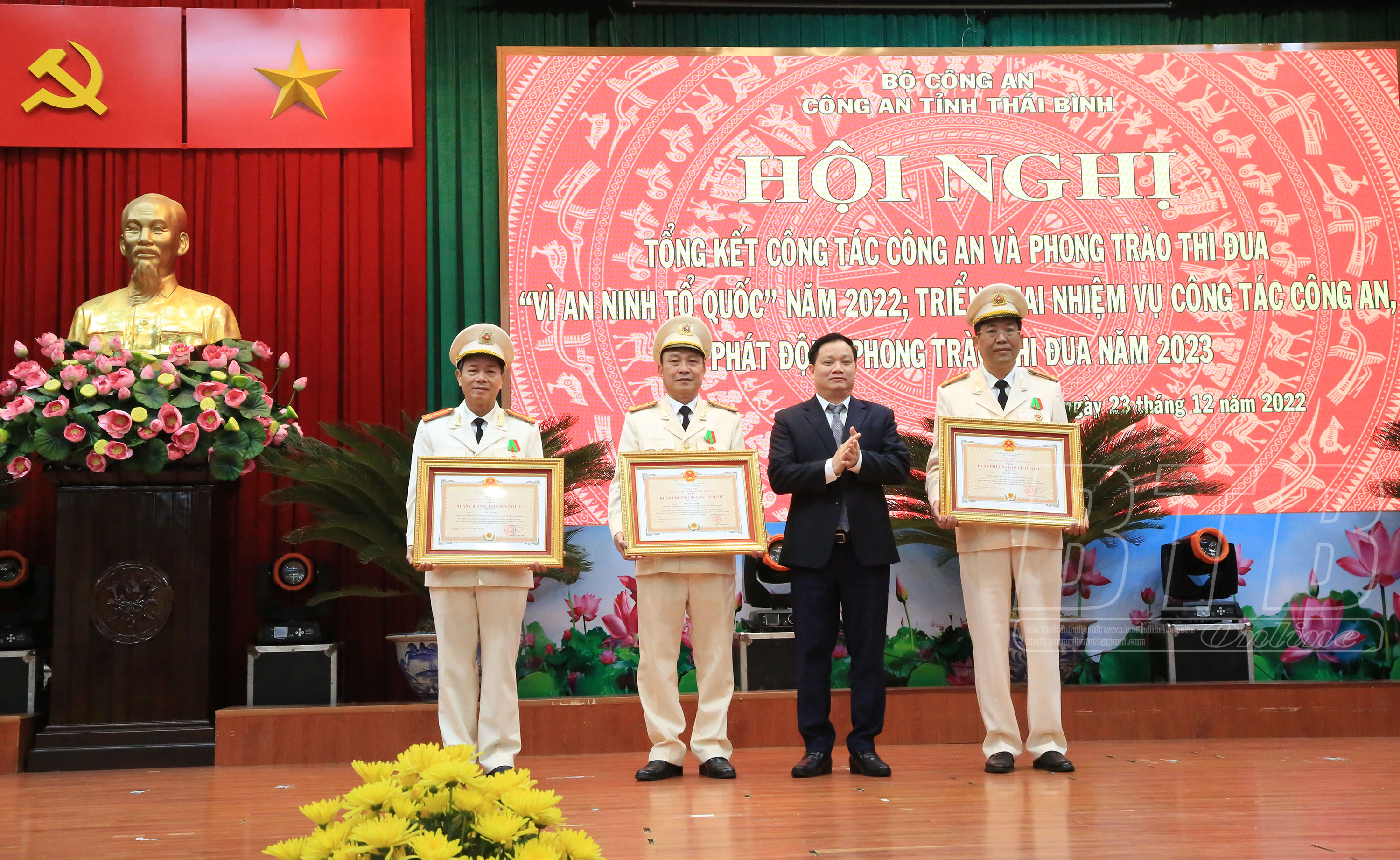 Tại hội nghị, thừa ủy quyền của Chủ tịch nước và Thủ tướng Chính phủ, đồng chí Phó Bí thư Tỉnh ủy, Chủ tịch UBND tỉnh đã trao Huân chương Bảo vệ Tổ quốc hạng Ba và bằng khen của Thủ tướng Chính phủ cho các tập thể, cá nhân đạt thành tích xuất sắc; lãnh đạo các cục, vụ thuộc Bộ Công an, lãnh đạo Công an tỉnh đã trao bằng khen của Bộ Công an, UBND tỉnh, cờ thi đua và danh hiệu Đơn vị quyết thắng cho các tập thể, cá nhân có thành tích xuất sắc trong phong trào thi đua “Vì an ninh Tổ quốc”.