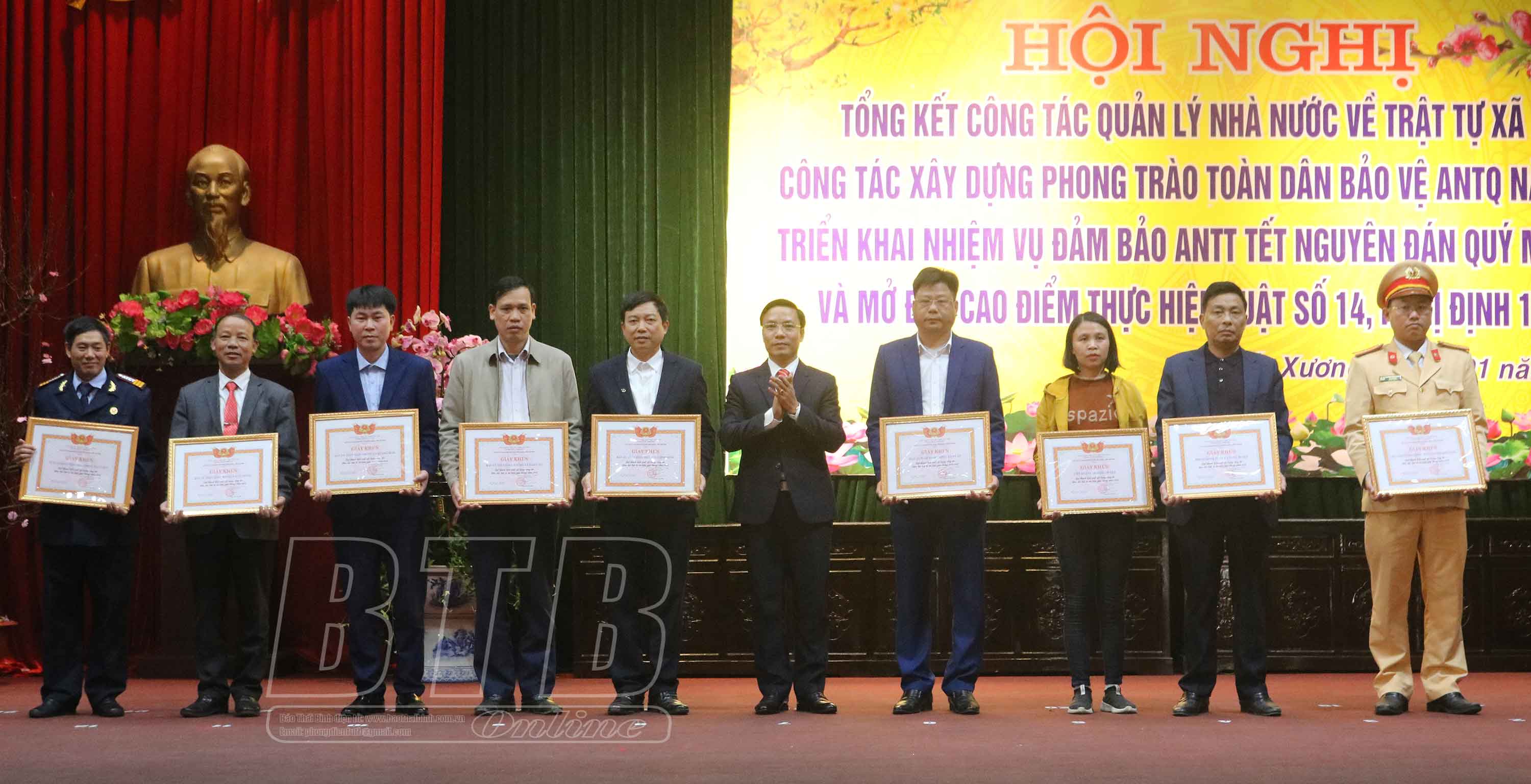 Tại hội nghị, nhiều tập thể, cá nhân có thành tích xuất sắc trong công tác bảo đảm an ninh trật tự và thực hiện phong trào toàn dân bảo vệ an ninh Tổ quốc năm 2022 được Bộ Công an, UBND huyện khen thưởng.