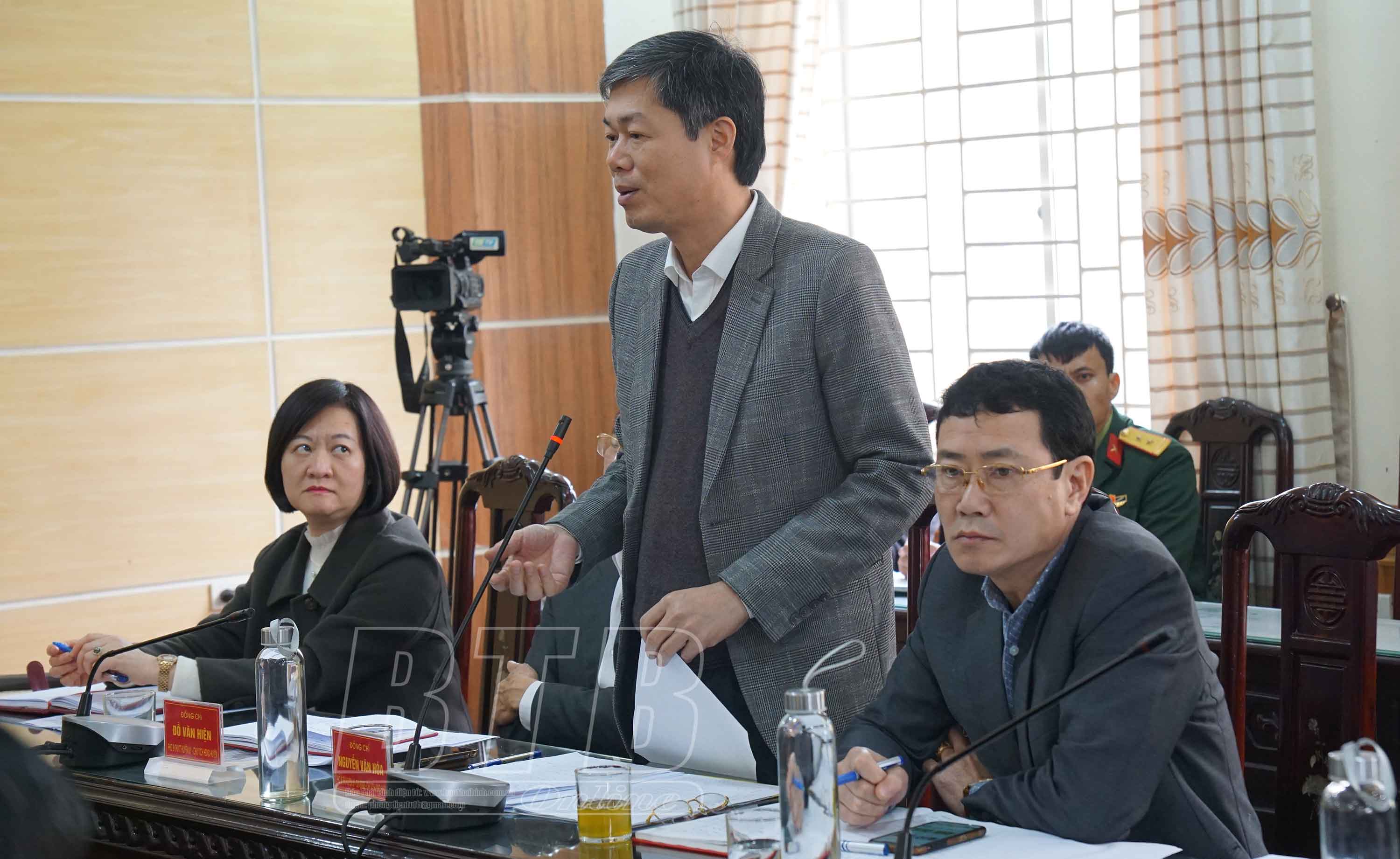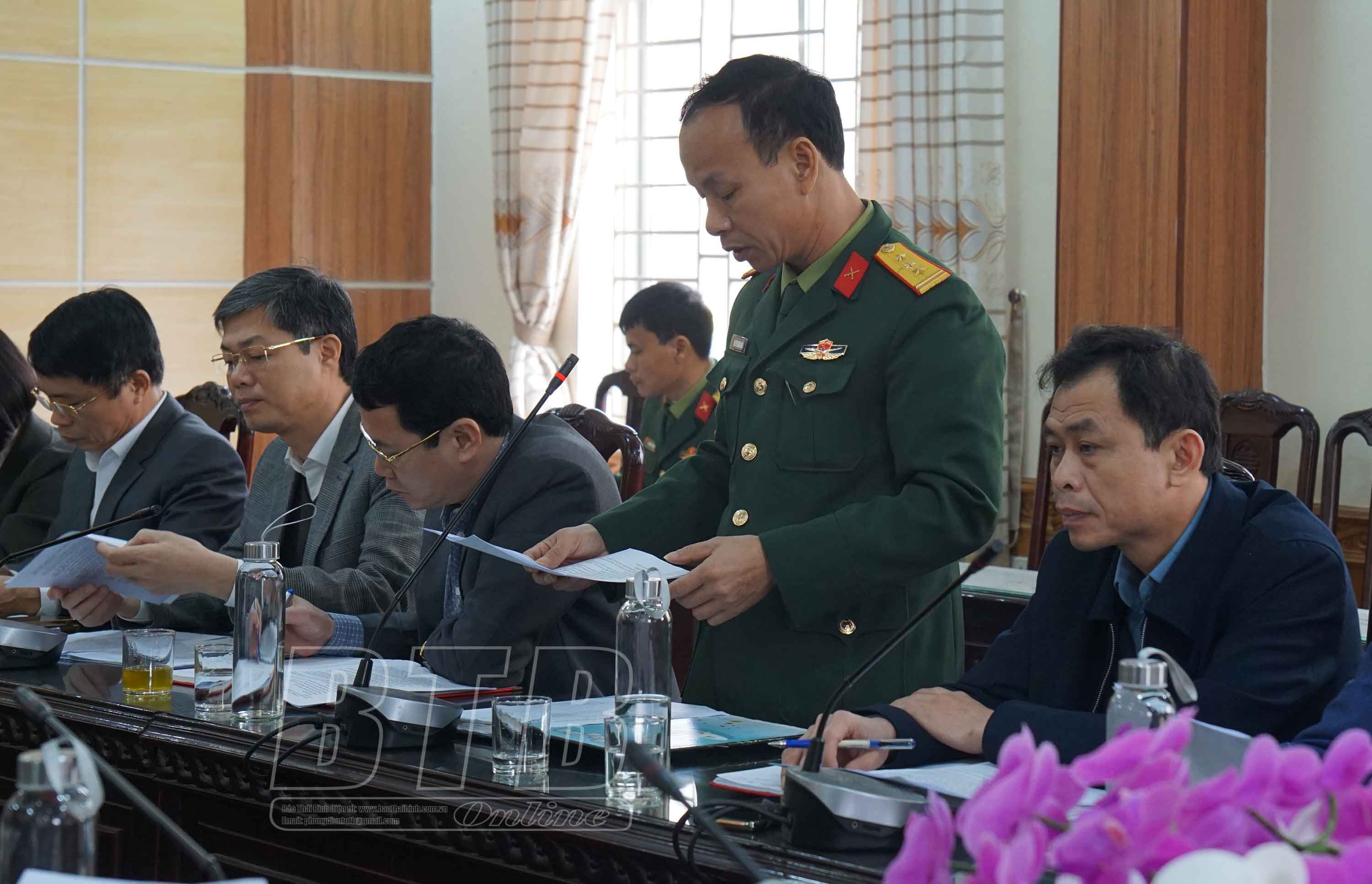 Lãnh đạo huyện Thái Thụy báo cáo tại buổi kiểm tra.