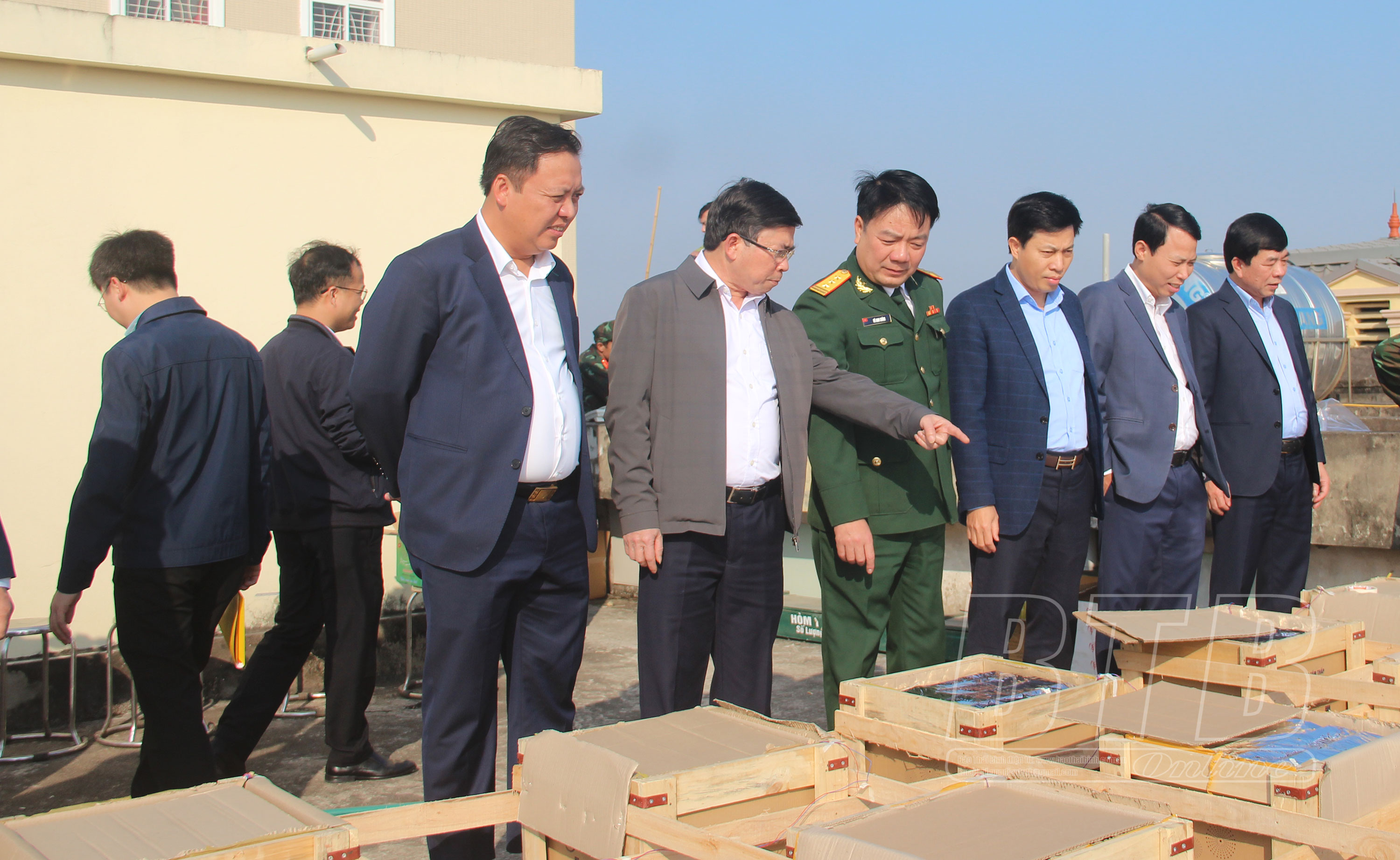 Các đồng chí lãnh đạo tỉnh kiểm tra công tác bảo đảm an ninh trật tự dịp tết trên địa bàn huyện Tiền Hải