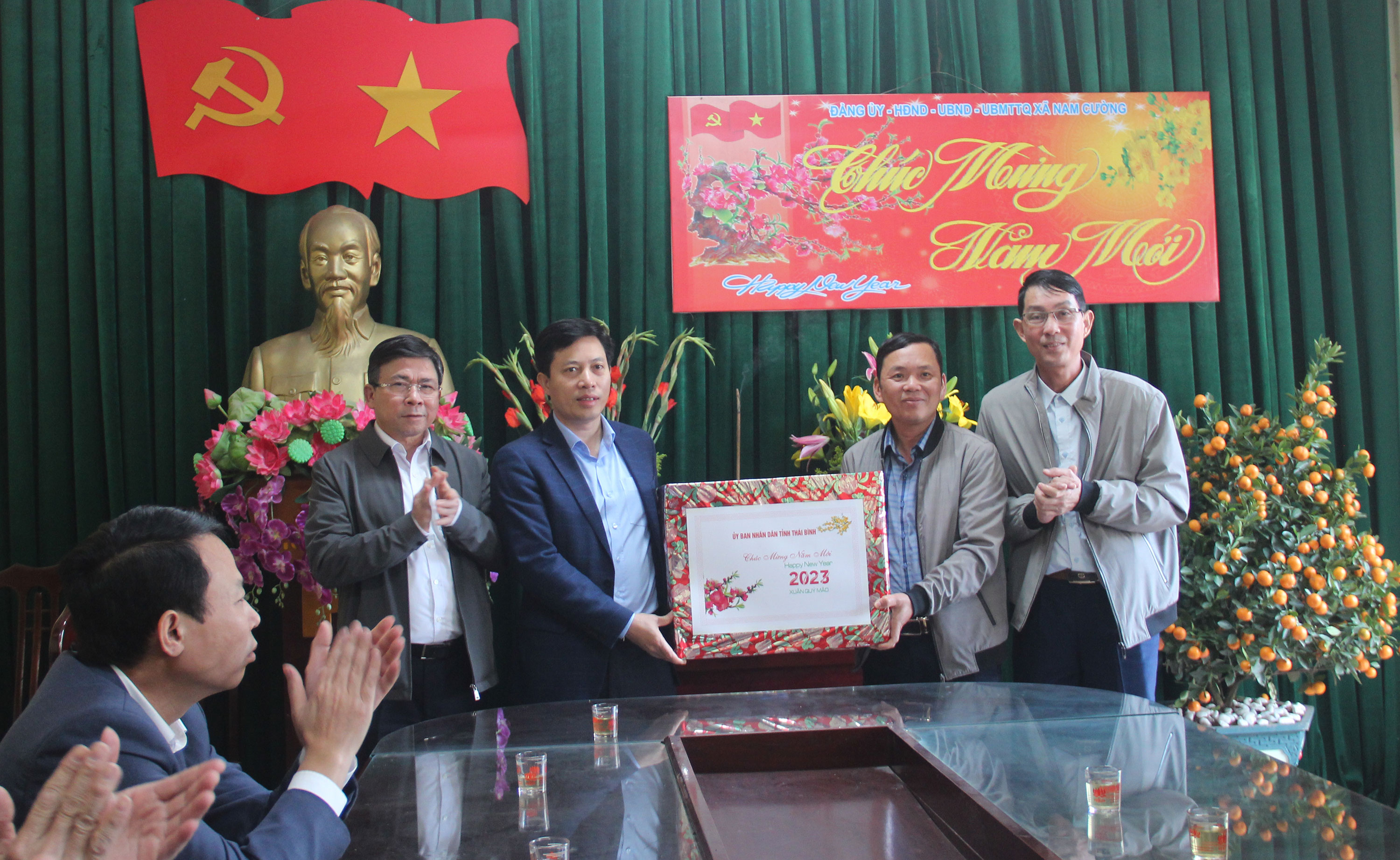 Các đồng chí lãnh đạo tỉnh tặng quà chúc tết cán bộ, công chức xã Nam Cường.