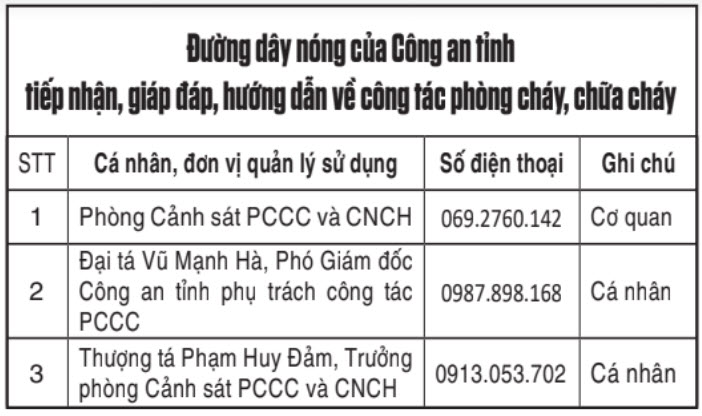Ông Hồ Minh Khánh, Trưởng phòng An toàn và Môi trường Công ty cho biết: Với tinh thần “Sản xuất phải an toàn, an toàn để sản xuất”, 100% cán bộ, nhân viên Công ty tự giác chấp hành và thực hiện nghiêm túc các quy định về bảo đảm an toàn PCCC và CNCH theo quy định. Ngoài trang bị hệ thống camera giám sát theo dõi 24/24 giờ đối với các thiết bị, khu vực có nguy cơ cháy, nổ, Công ty đã quan tâm đầu tư trang thiết bị, phương tiện PCCC và CNCH chất lượng với xe chữa cháy chuyên dụng, bơm, ống trụ, lăng phun chữa cháy, hệ thống chữa cháy cố định tại các trạm sản xuất và toàn khu vực...