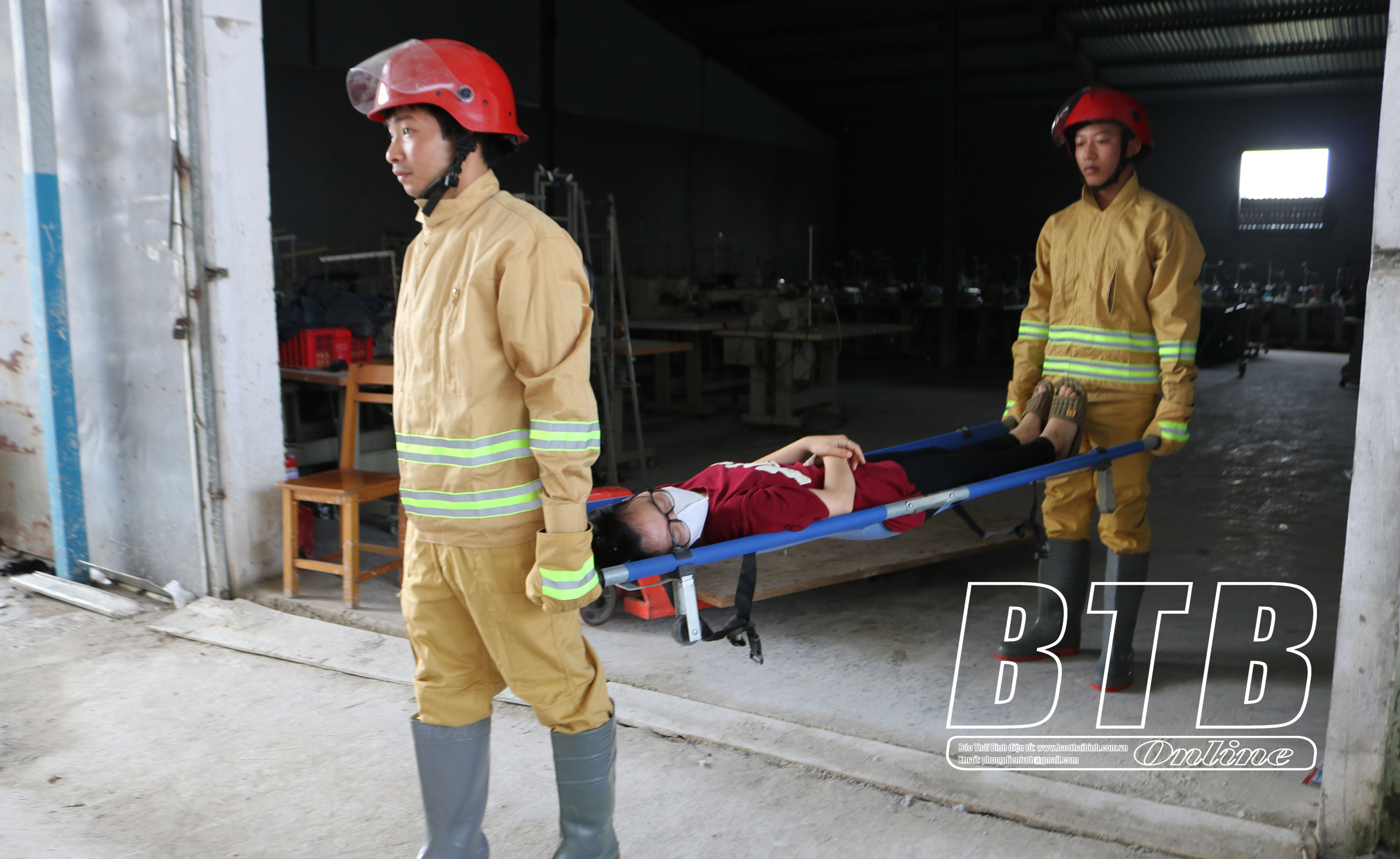 Thực hành tìm kiếm, cứu người bị nạn khỏi đám cháy trong các nhà xưởng.