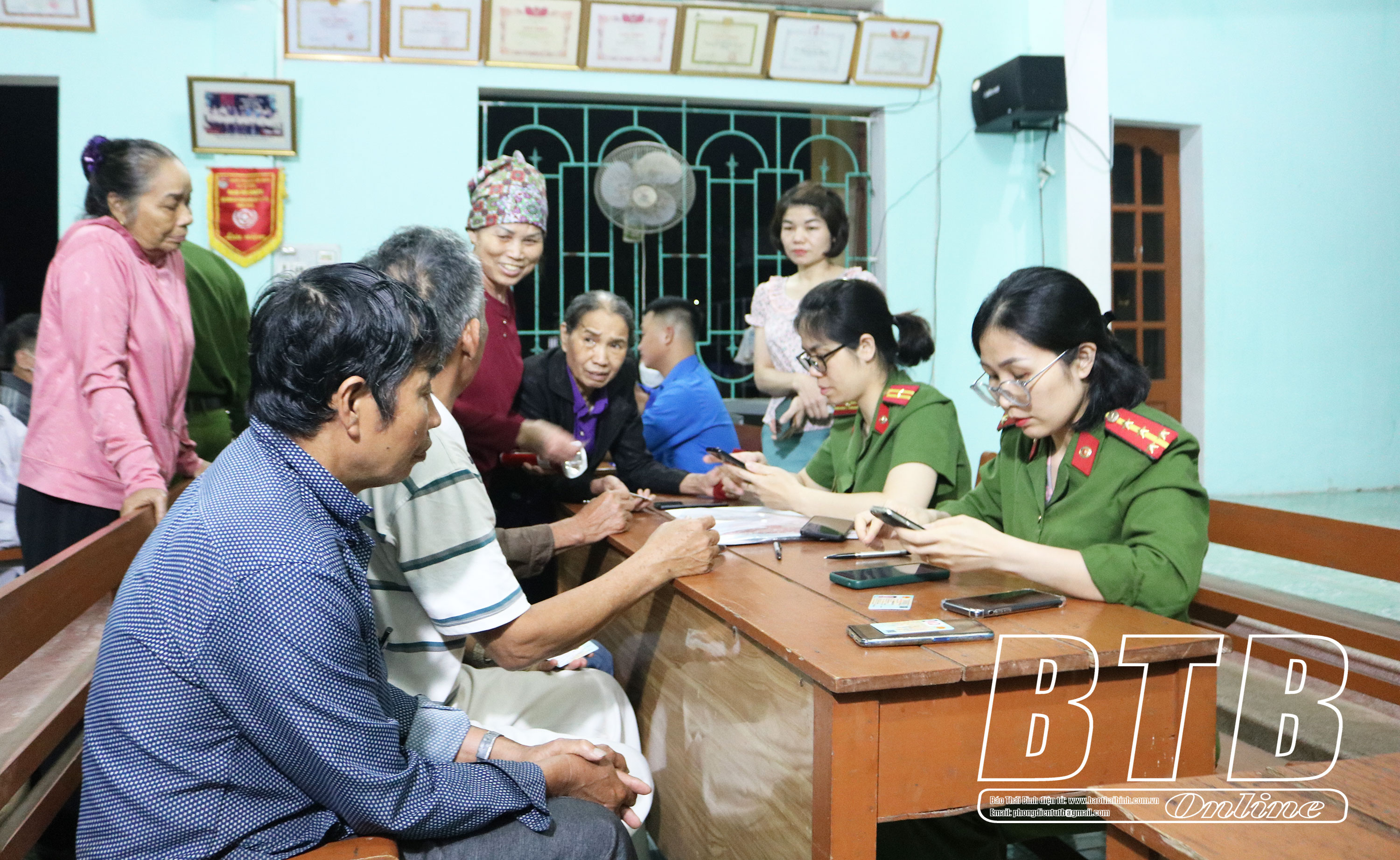 Người dân xã Minh Tân (Đông Hưng) giải quyết thủ tục hành chính tại Công an xã.
